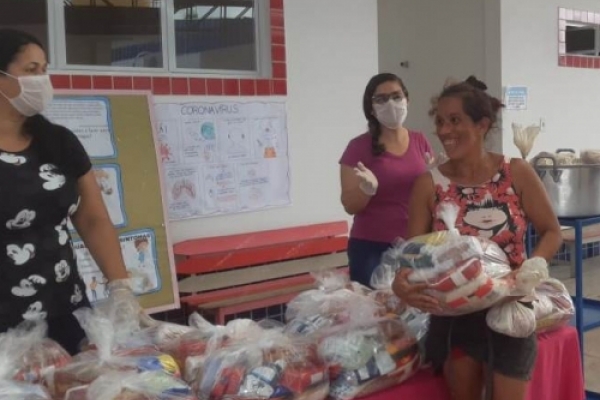 Distribuição de cestas básicas para famílias dos alunos em situação de vulnerabilidade social