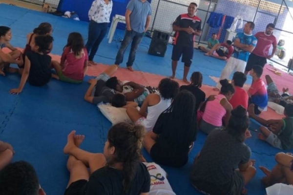 Profissionais do Projeto Fortalecendo Laços realizam palestra para judocas no V Kangueiko
