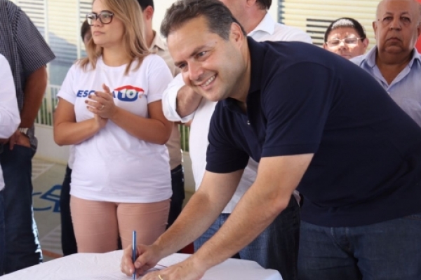 Prefeita e governador assinam a ordem de serviço para construção da escola estadual em Luziápolis