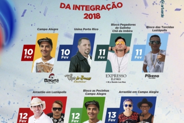 Confira a Programação Oficial do Carnaval da Integração 2018 em Campo Alegre