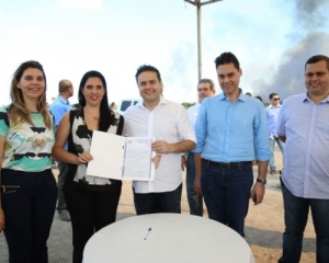 Durante a solenidade, o governador Renan Filho ao lado da prefeita Pauline Pereira, da deputada estadual Jó Pereira e outras autoridades plantou mudas de árvores em volta do terreno. Entre elas, futuras craibeiras, goiabeiras e pés de maracujá.