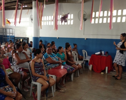 A palestra foi ministrada pela Enfermeira Obstetra, Elayne Freitas, sendo acompanhada da Psicóloga do CRAS e responsável pelo Grupo de Gestantes e Grávidos, Danielle Tavares, e a oficineira do Grupo de enxoval, Luciene Santos.