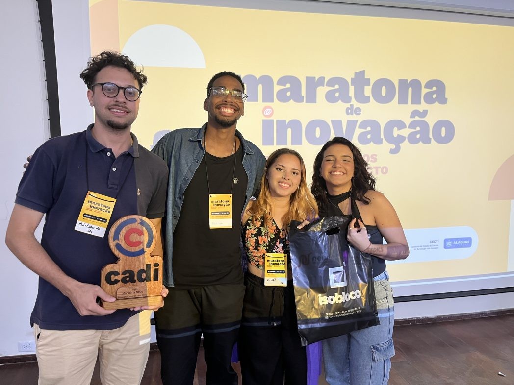 Quatro jovens de Campo Alegre participaram da Maratona de Inovação realizada em Marechal Deodoro e conquistaram o primeiro lugar na competição. Representando o município, eles desenvolveram uma ideia inovadora que se destacou entre os projetos apresentados e trouxeram o prêmio para a cidade. A Maratona de Inovação de Negócios de Impacto Social e Ambiental (NISA) foi concluída com sucesso no domingo (21), no Instituto Federal de Alagoas – Campus Marechal Deodoro.