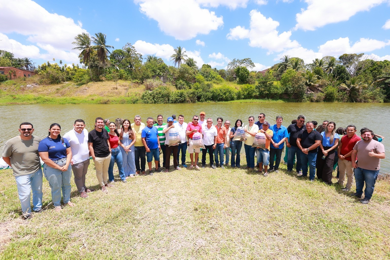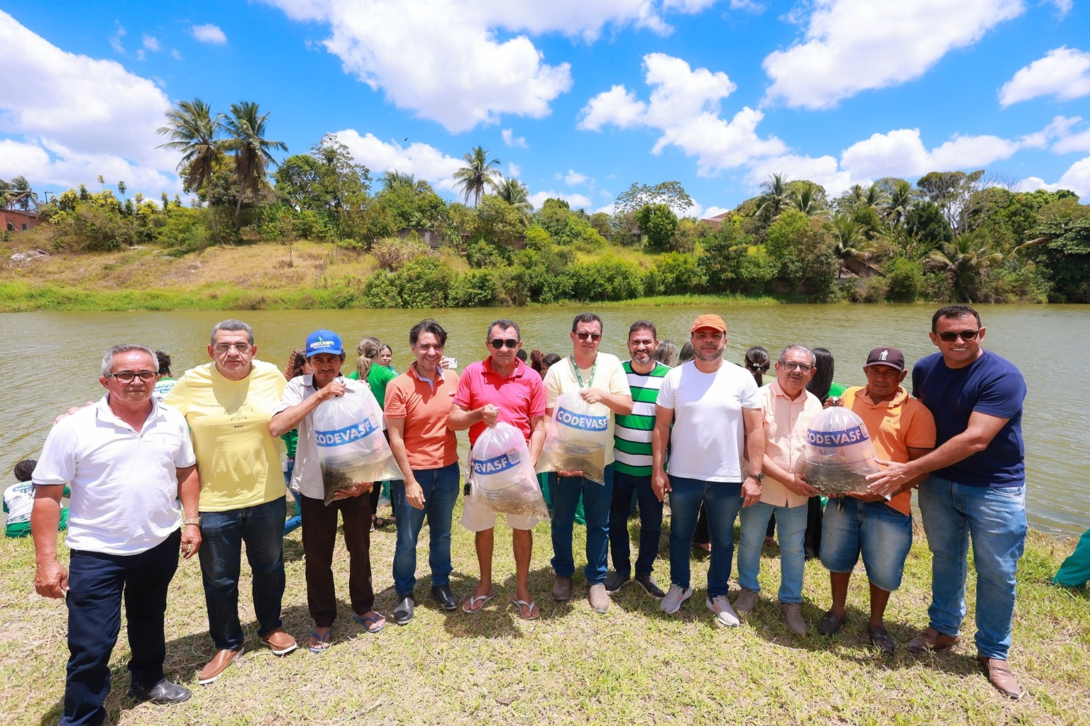 A ação integra projeto de revitalização do açude através do projeto “Águas do mandante”, com o povoamento das águas que representa fonte de alimento e renda para a população local.