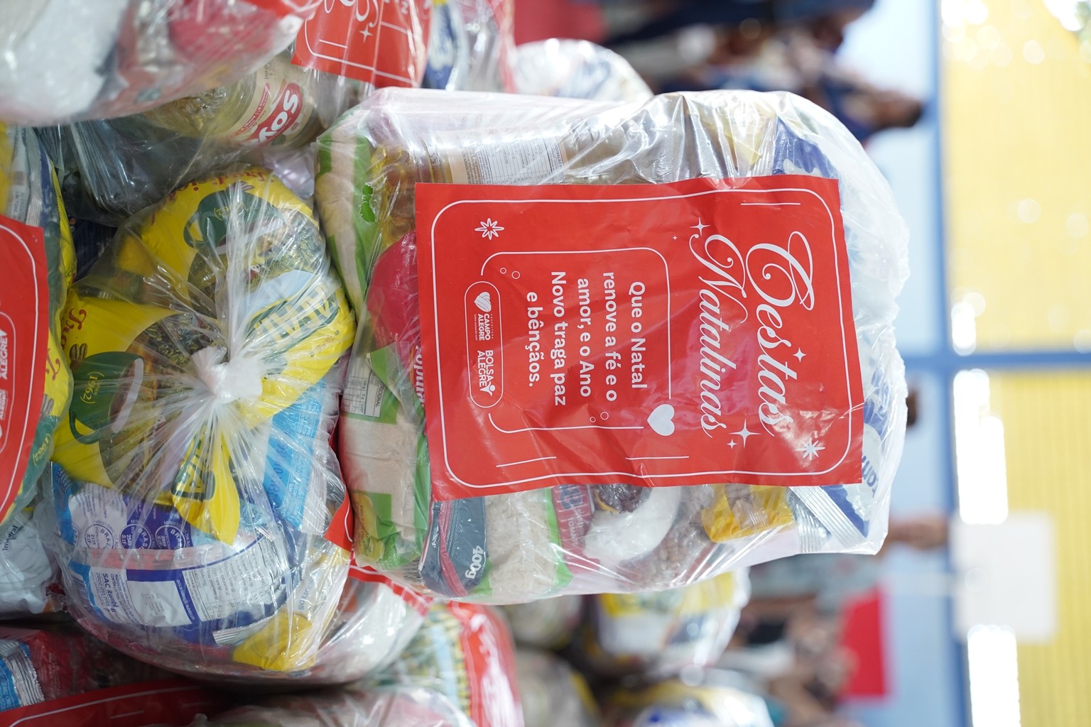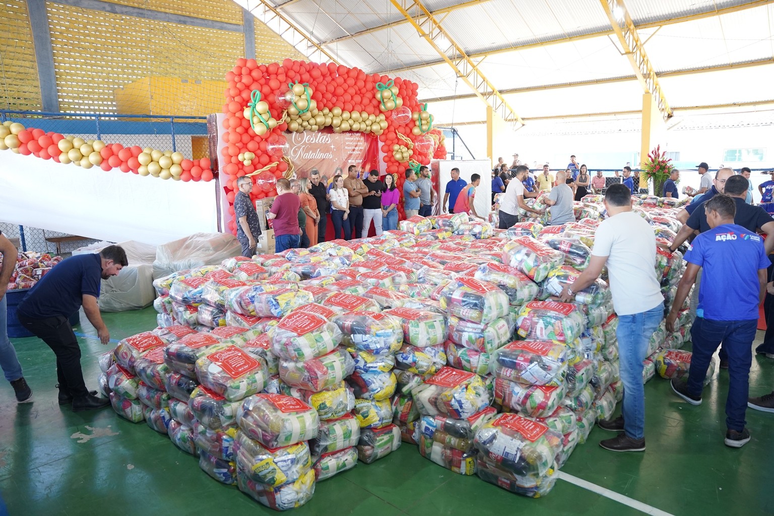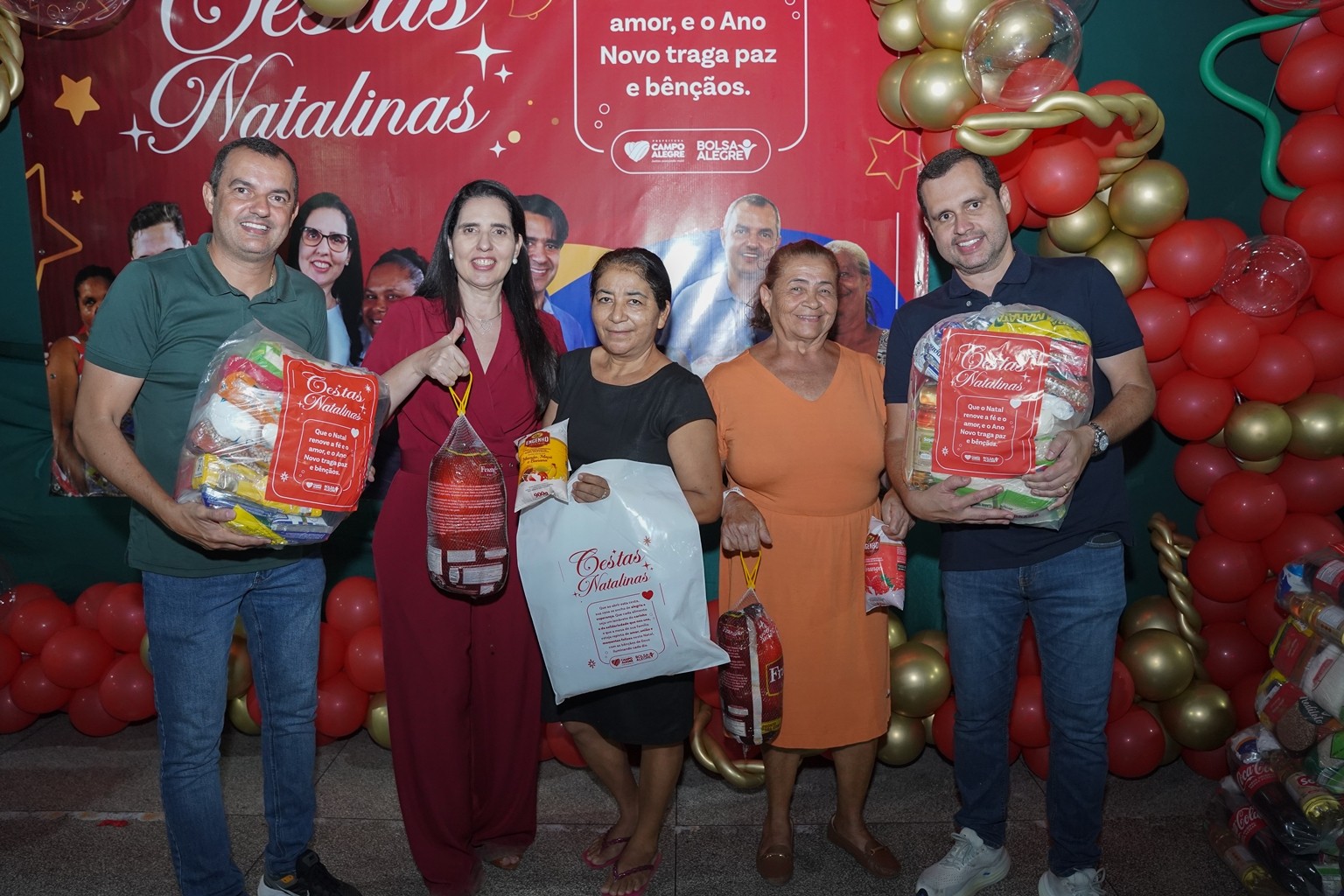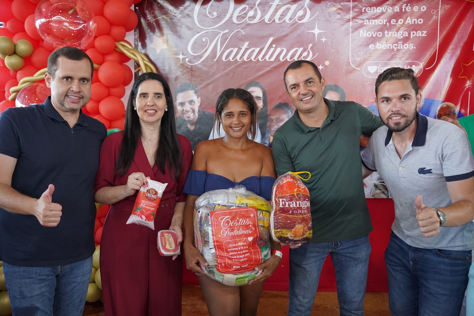 A prefeitura já realiza as entregas de 2.500 cestas básicas todos os meses, mas em dezembro foram entregues 3.500 cestas básicas que contemplaram todas as famílias que fazem parte do Programa Bolsa Alegre que já recebem as cestas mensalmente, mais as famílias beneficiárias dos complexos nutricionais (Casas da sopa), onde além das cestas todas as famílias também receberam um frango já temperado, e um litro de iogurte.