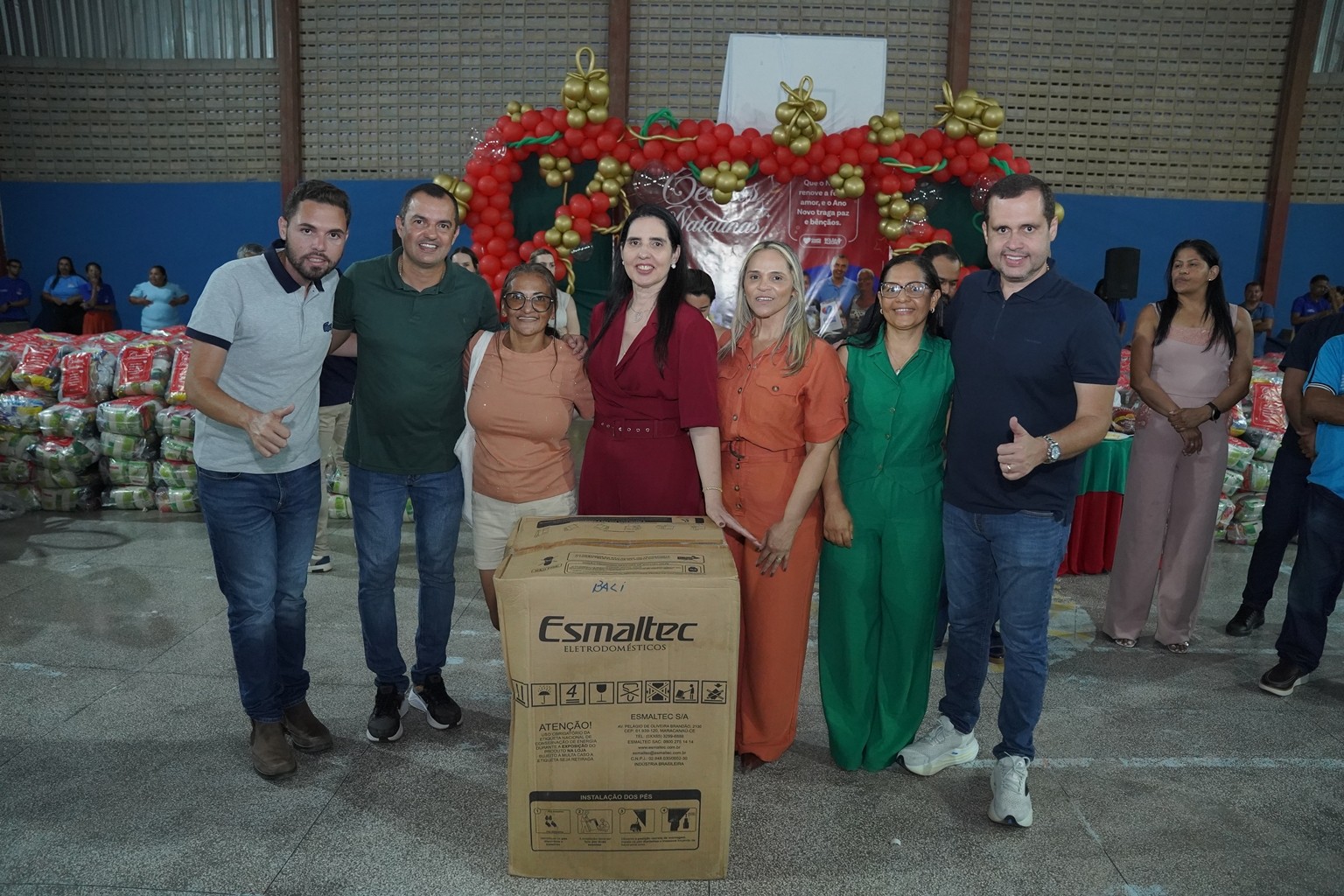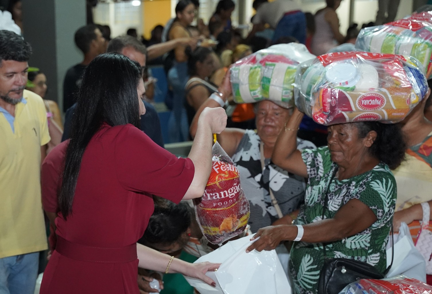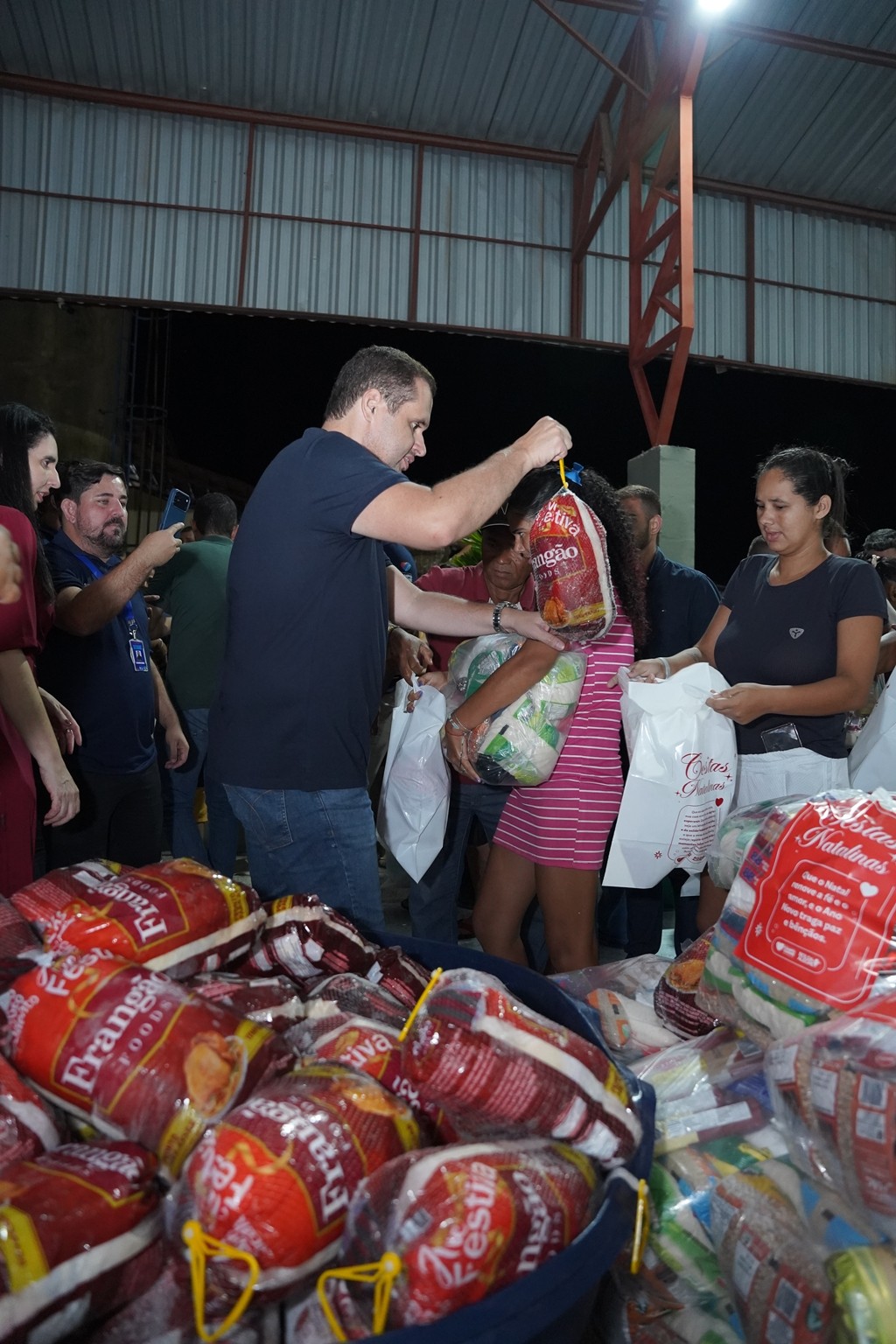 A prefeitura já realiza as entregas de 2.500 cestas básicas todos os meses, mas em dezembro foram entregues 3.500 cestas básicas que contemplaram todas as famílias que fazem parte do Programa Bolsa Alegre que já recebem as cestas mensalmente, mais as famílias beneficiárias dos complexos nutricionais (Casas da sopa), onde além das cestas todas as famílias também receberam um frango já temperado, e um litro de iogurte.