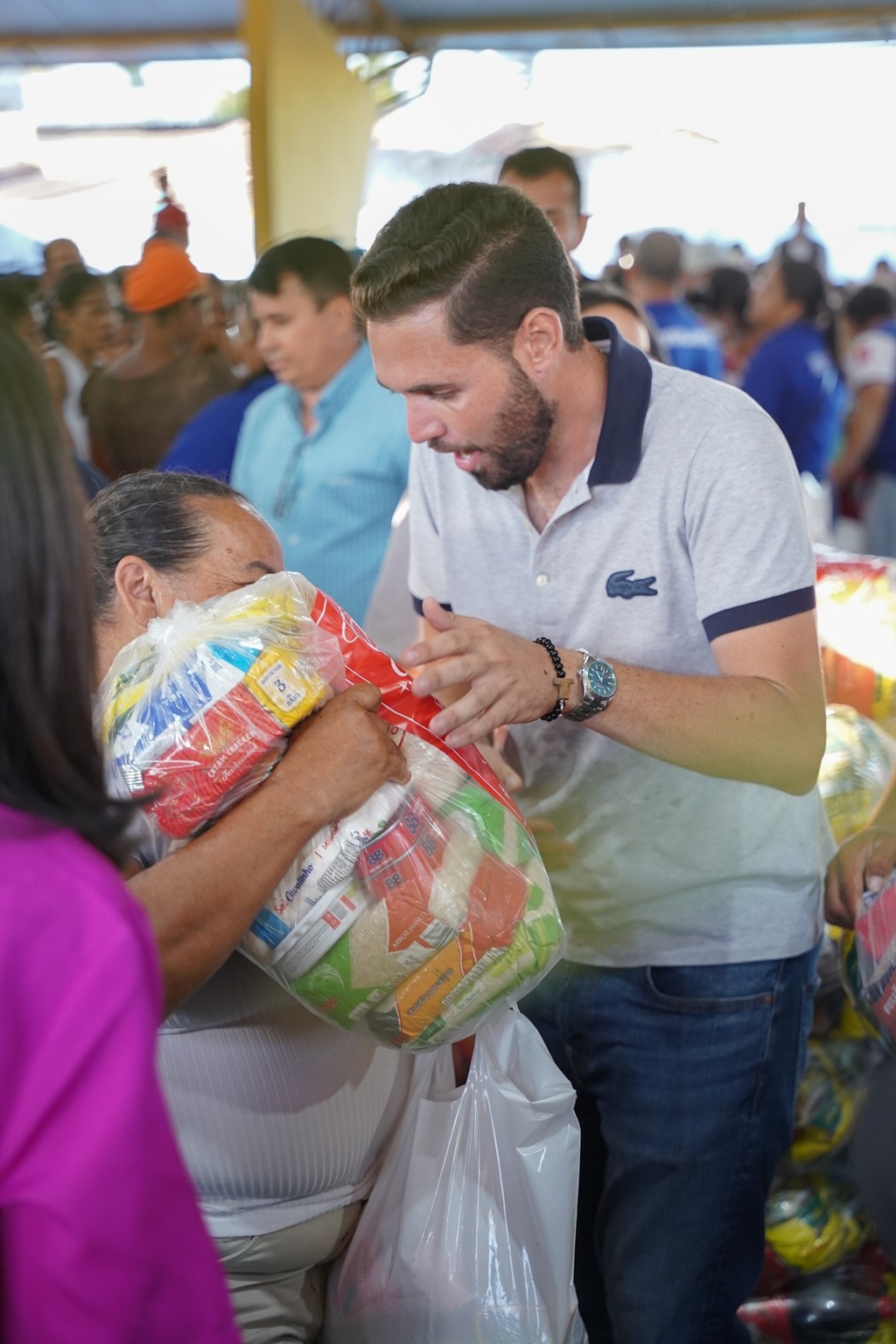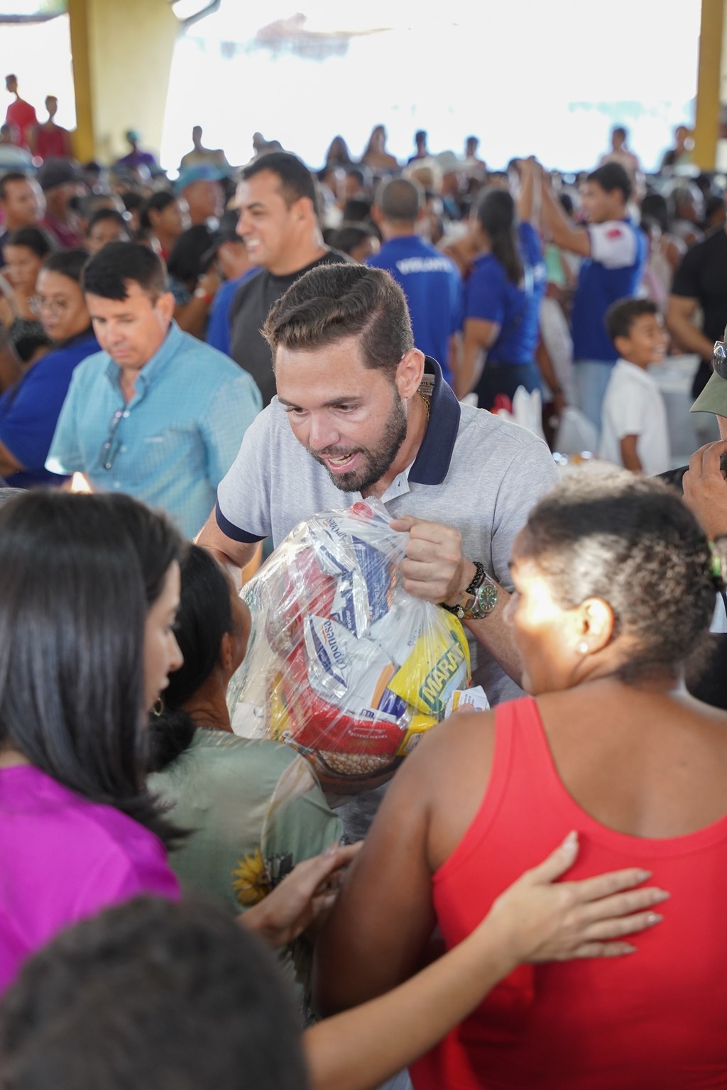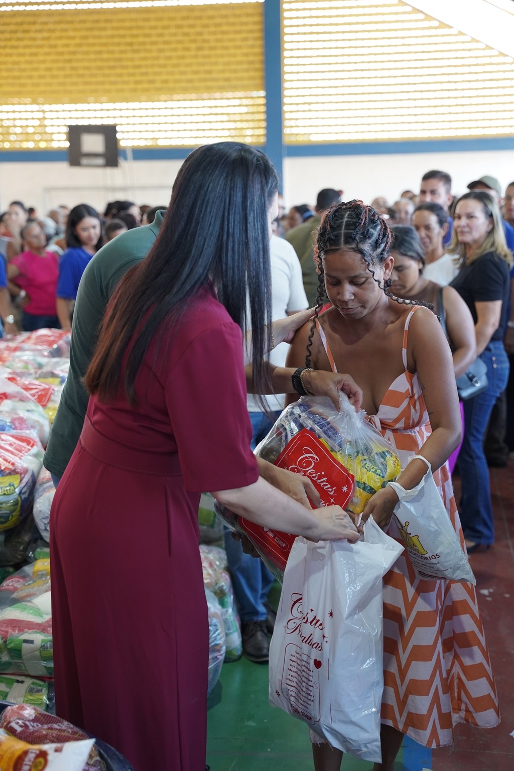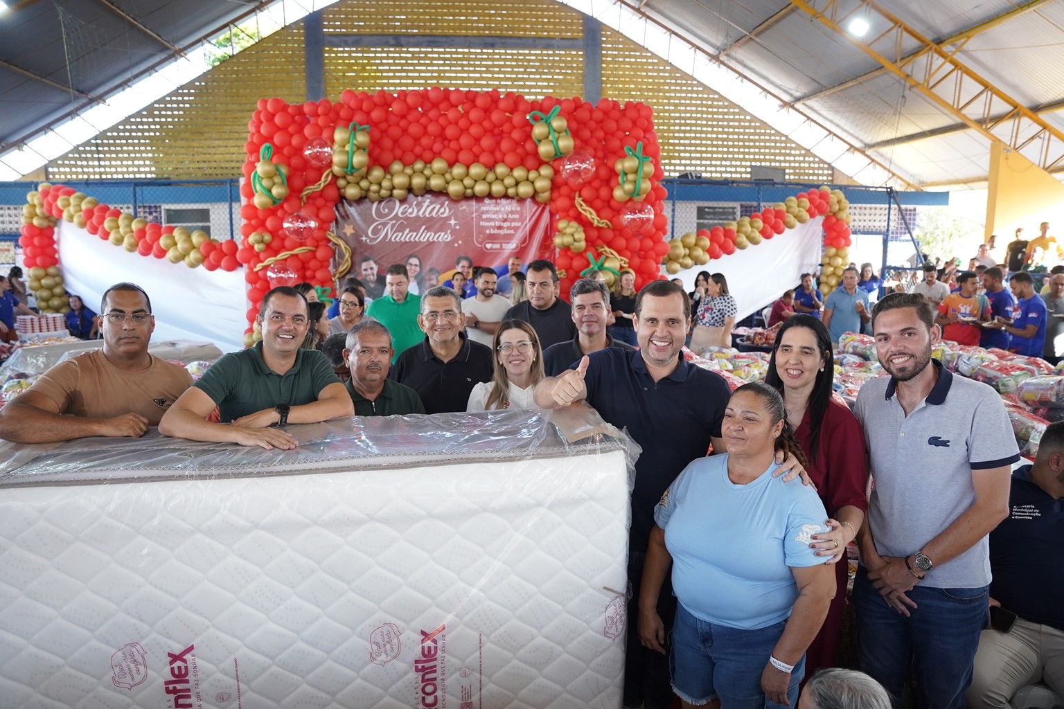 A prefeitura já realiza as entregas de 2.500 cestas básicas todos os meses, mas em dezembro foram entregues 3.500 cestas básicas que contemplaram todas as famílias que fazem parte do Programa Bolsa Alegre que já recebem as cestas mensalmente, mais as famílias beneficiárias dos complexos nutricionais (Casas da sopa), onde além das cestas todas as famílias também receberam um frango já temperado, e um litro de iogurte.