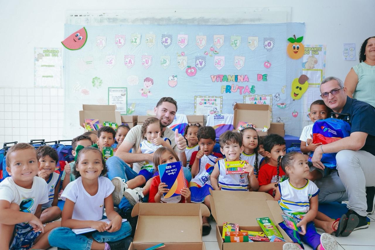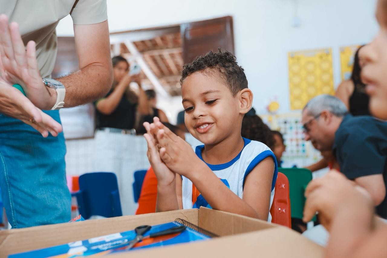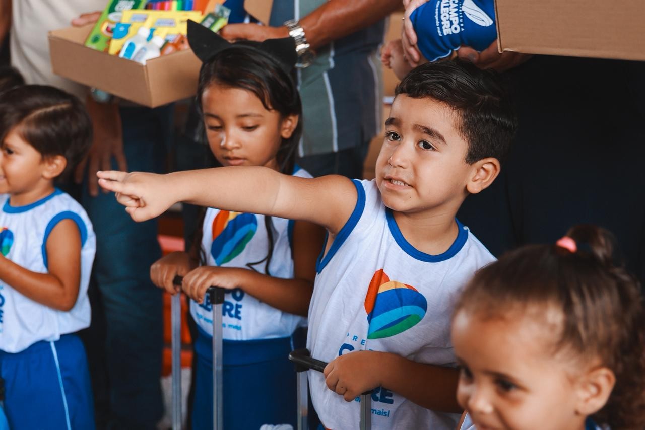 A entrega foi marcada pela alegria das crianças e adolescentes, que receberam os novos kits escolares e fardamento com muito entusiasmo.