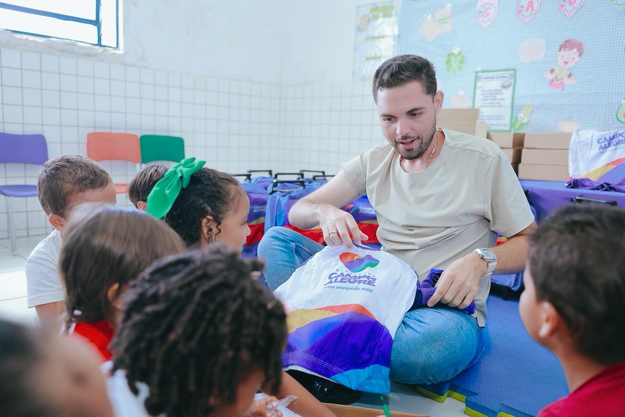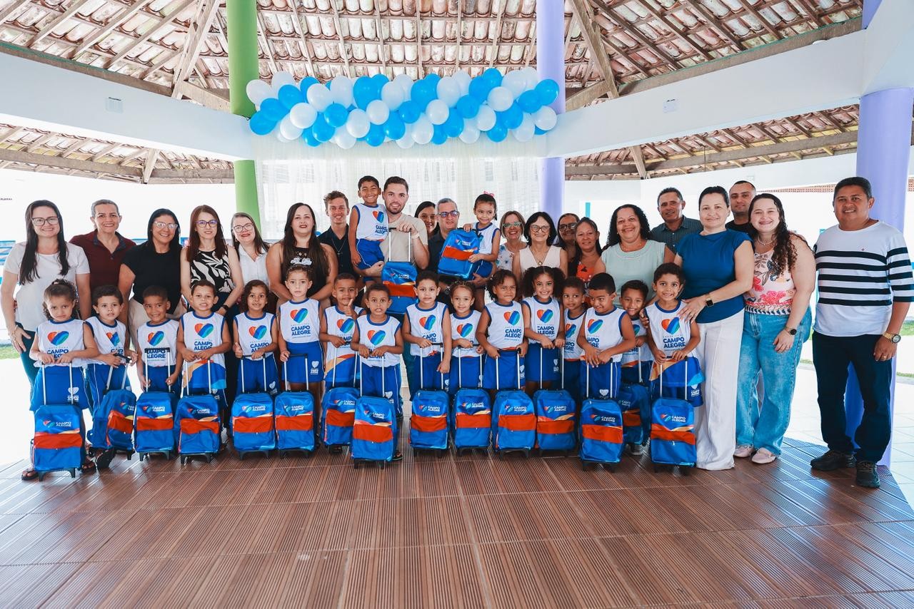 Dessa vez foram contemplados os alunos do Centro de Educação Infantil Lizete Alves Ferreira e da Escola Cicero Salustiano em Luziápolis, Escola João Paulo II, Escola Helenilda Correia, Centro de Educação Infantil Maria José Vieira da Costa e Centro de Educação Infantil Jaci Vieira da Costa em Campo Alegre.