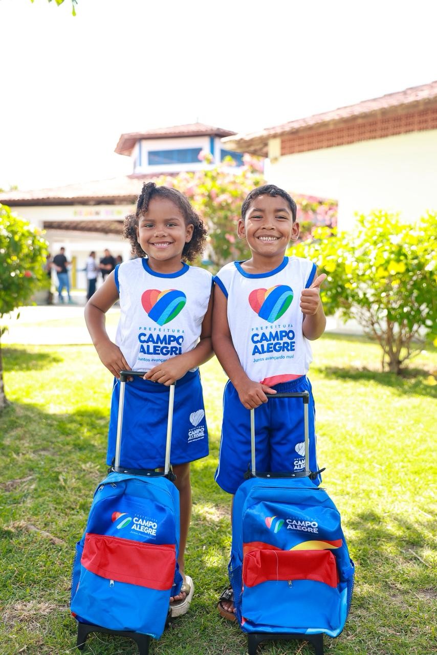 Na manhã desta sexta-feira 13 de Março, a prefeita Pauline Pereira, o vice-prefeito Leonardo Monteiro, os gestores Nicolas Pereira e Duduzinho Pereira, vereadores e secretários municipais realizaram as entregas dos novos fardamentos, mochilas e kits escolares para os alunos que estudam em mais 06 instituições da Rede Municipal de Ensino de Campo Alegre.