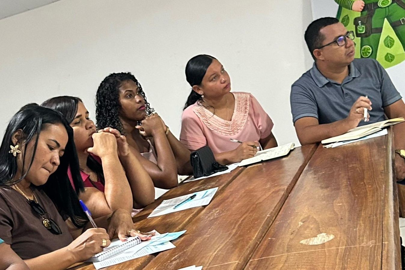 O momento foi conduzido pelas formadoras Ádria Cristina e Gilvanice da Silva e teve como objetivo orientar os monitores no desenvolvimento das atividades pedagógicas, com foco no planejamento bimestral e no fortalecimento das ações voltadas à educação ambiental nas instituições de ensino.