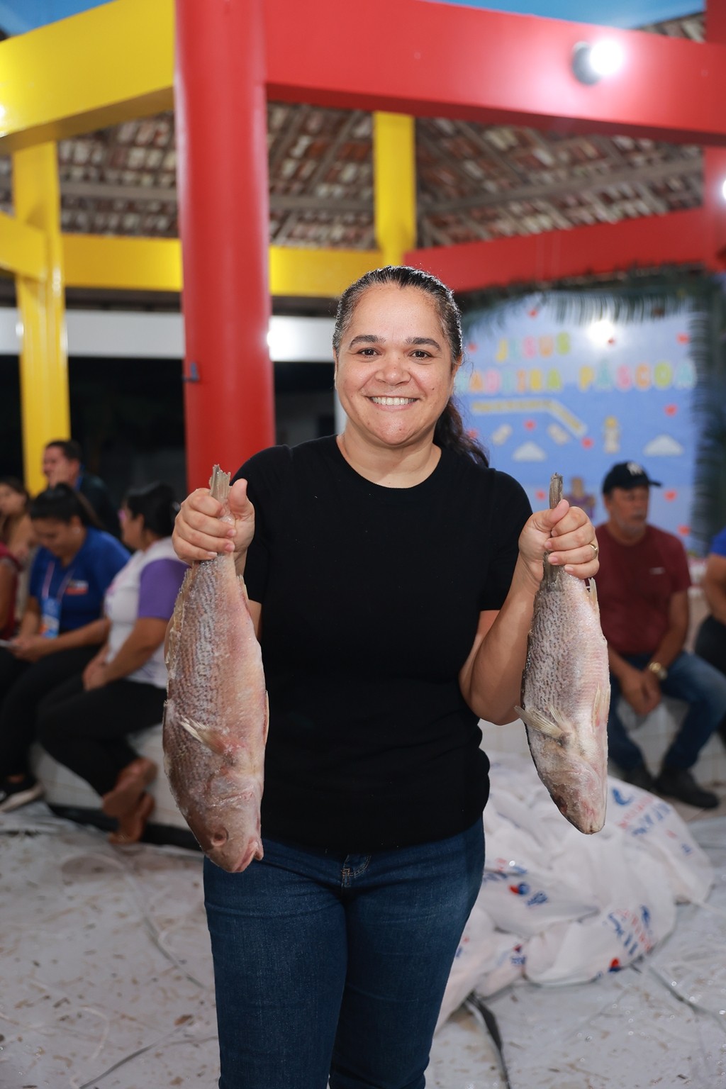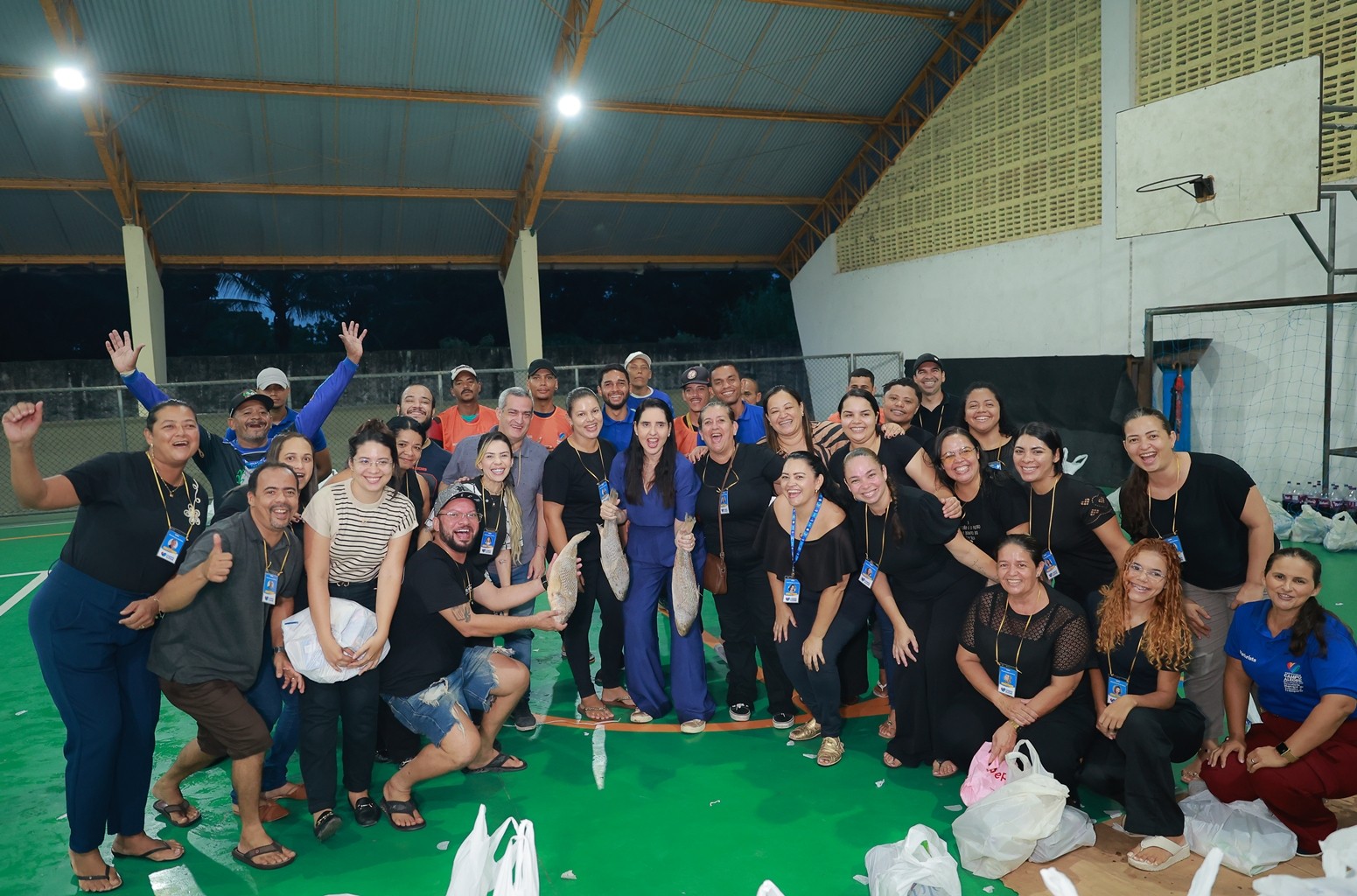 A prefeita também agradeceu a todos os envolvidos na organização e distribuição do peixe, garantindo que o peixe e os demais itens fossem entregue em todas as comunidades.