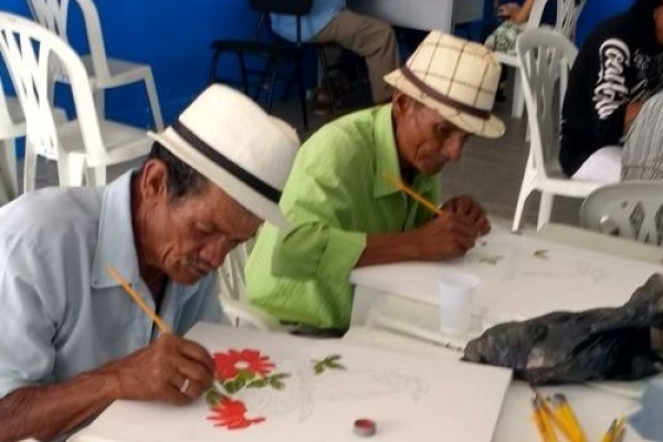 Idosos do grupo VIVA FELIZ de Luziápolis participam de oficina de pinturas em tela