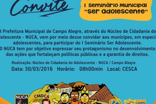 NUCA de Campo Alegre realizará o primeiro Seminário Ser Adolescente