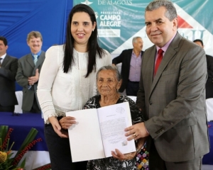 O sonho da aposentada Marina Maria de Jesus, de 100 anos, em ter o documento que comprova a propriedade da casa onde mora há 30 anos, em Campo Alegre, foi concretizado nesta quinta-feira (10), quando ela recebeu o registro do imóvel, gratuitamente, pelo Moradia Legal II, ela e mais 940 pessoas receberam os títulos entregues no município, a moradores da cidade e dos povoados Pimenteira e Chã de Imbira e também do Distrito de Luziápolis.