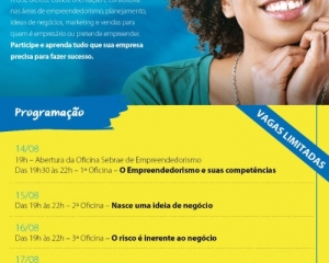 Estão sendo ofertadas 300 vagas para que empresários formalizados, informais e empreendedores em potencial (pessoas que estejam pensando em abrir um negócio) possam participar do evento e desenvolver suas características e habilidades empreendedoras, diante de uma metodologia certificada e bem sucedida.
