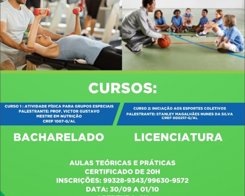 Na oportunidade, estudantes e profissionais de educação física poderão gratuitamente assistir aos cursos dentro de sua área de atuação, onde serão apresentados conteúdos teóricos e práticos, e ainda receberão um Certificado com 20 horas, sendo uma excelente oportunidade para todos os estudantes e profissionais de Educação Física de Campo Alegre e das regiões limítrofes.