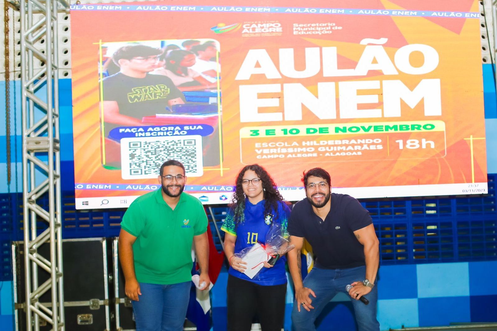 Centenas de estudantes de Campo Alegre estão na contagem regressiva para a prova do Exame Nacional do Ensino Médio - ENEM. E com o objetivo de ajudar nessa jornada tão importante, a Prefeitura de Campo Alegre através da Secretaria Municipal de Educação realizou nesta sexta-feira (03) o primeiro dia do aulão DE OLHO NO ENEM, com a participação de centenas de estudantes do município e adjacências que irão disputar a tão sonhada vaga em universidades através ENEM. O aulão aconteceu na Escola Municipal Monsenhor Hildebrando Guimarães.