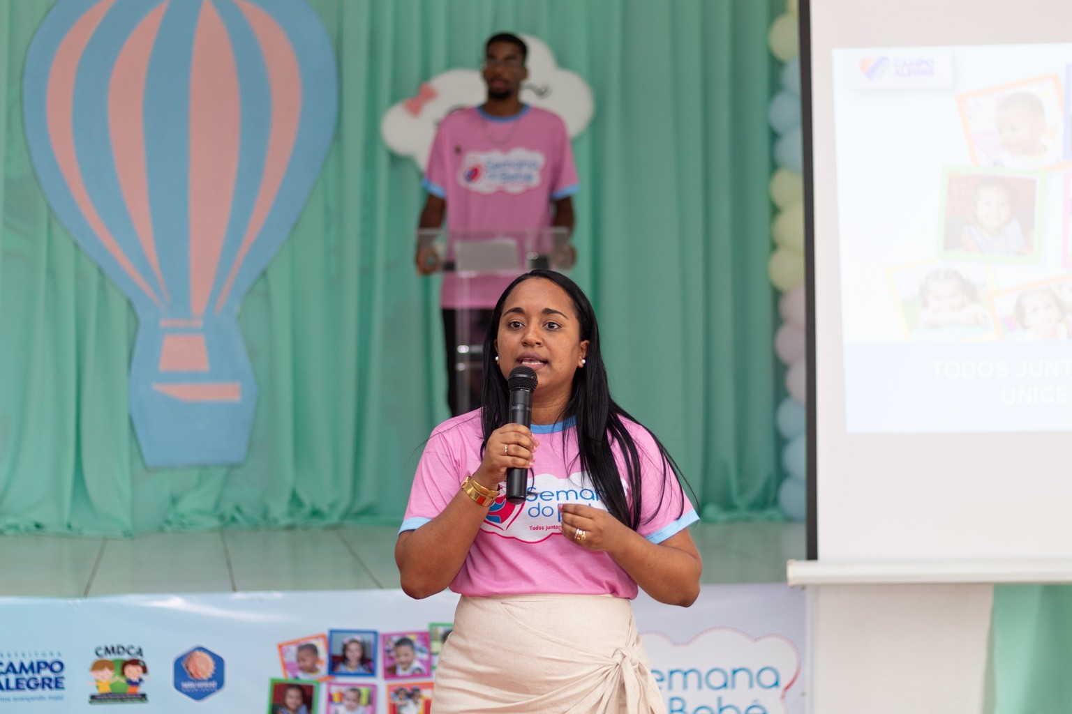 No momento, também foi realizada uma palestra que abordou sobre o tema central da Semana do Bebê, ministrada pela Assistente Social Luiza Santana, que também é articuladora do selo UNICEF no município.