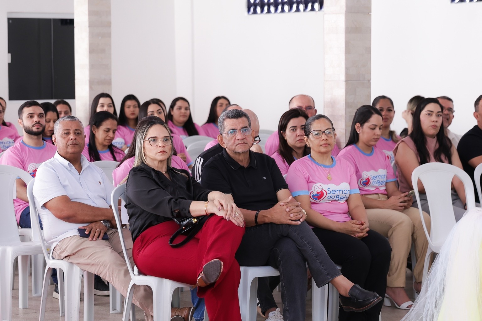 A prefeita Pauline Pereira, o vice-prefeito Leonardo Monteiro, as secretárias titulares das secretarias envolvidas na Semana do Bebê, vereadores e servidores públicos participaram da ativamente da programação.