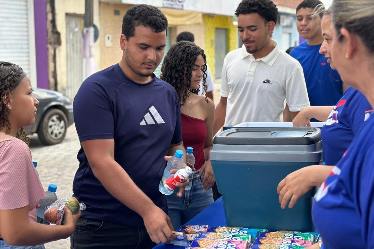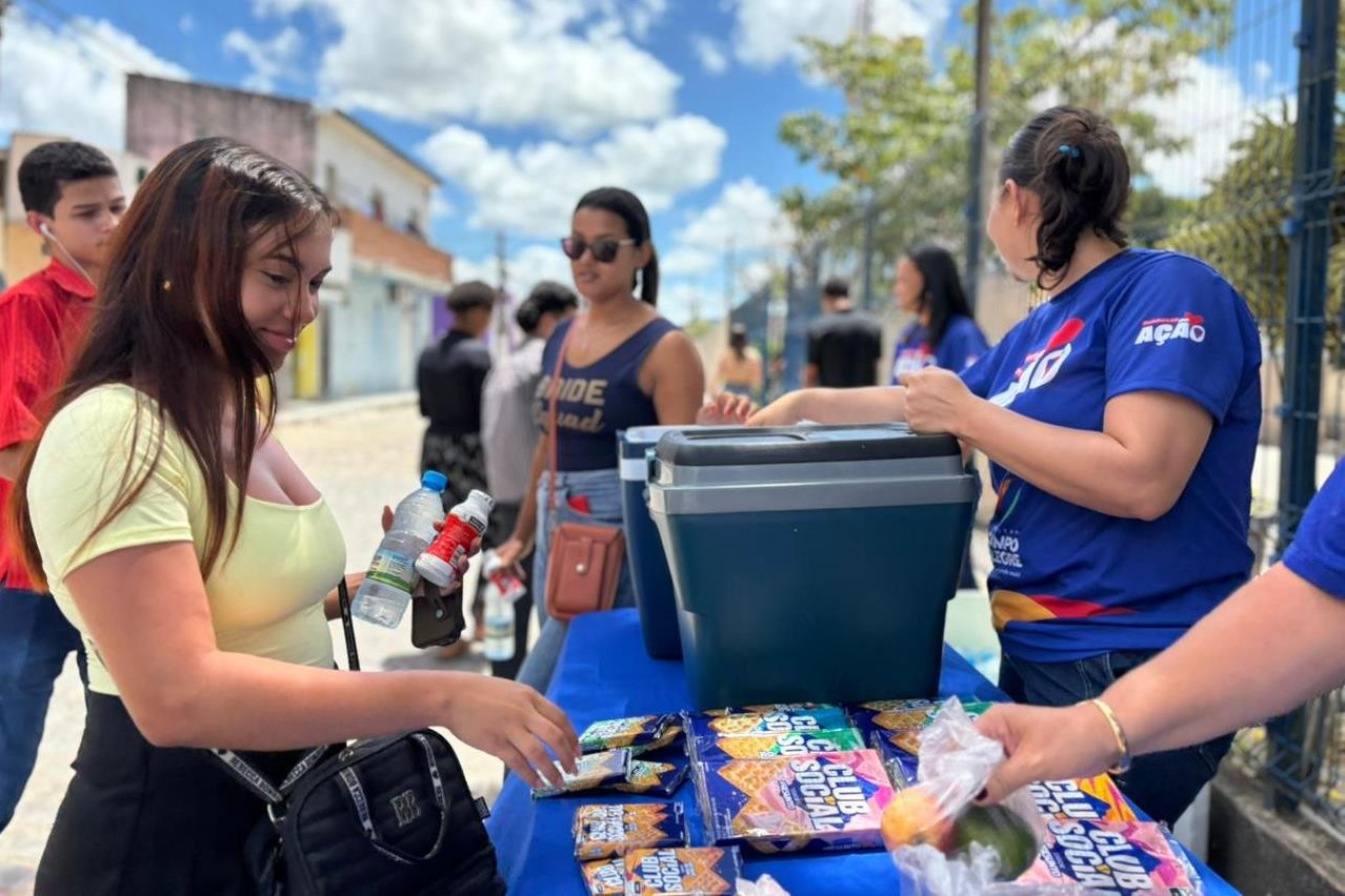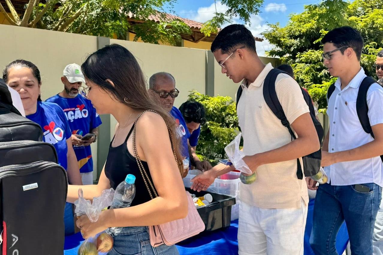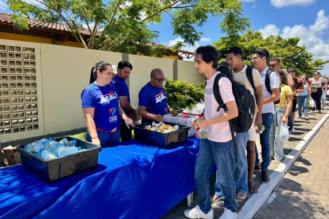 Na chegada aos locais de provas os estudantes novamente foram recepcionados com a distribuição de água, frutas e lanches, um apoio essencial para que todos pudessem ter tranquilidade durante a realização das provas.