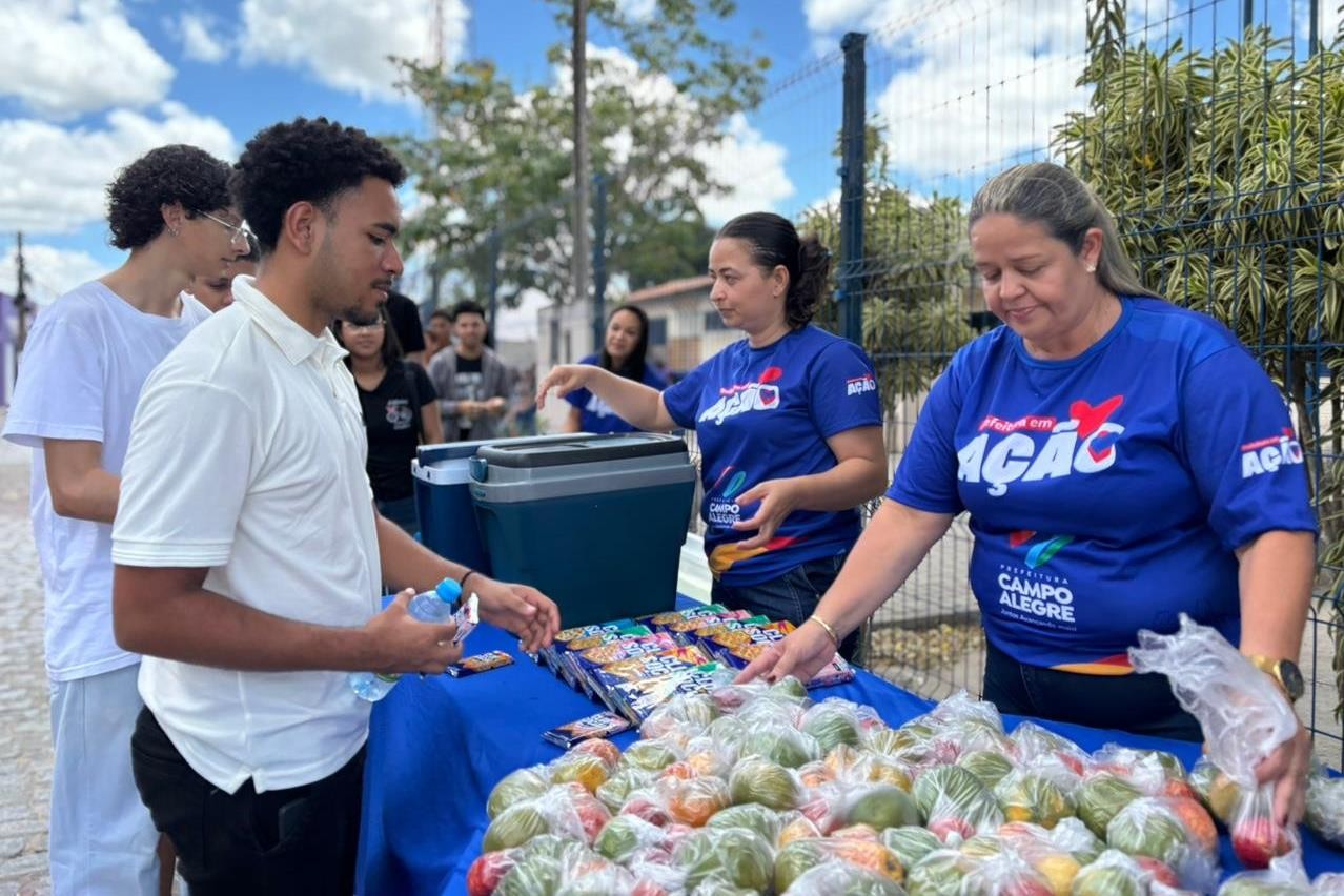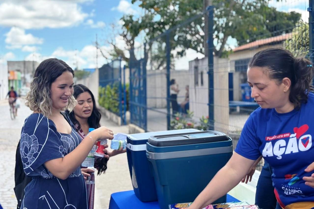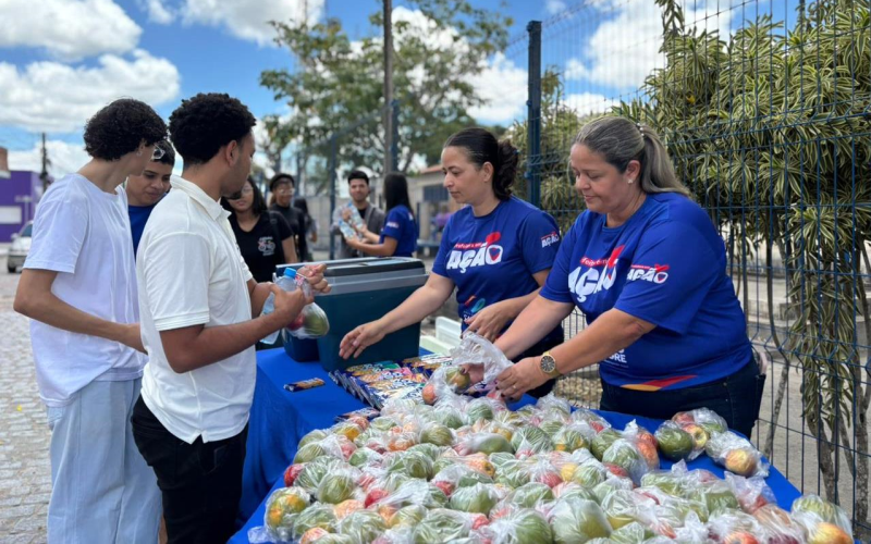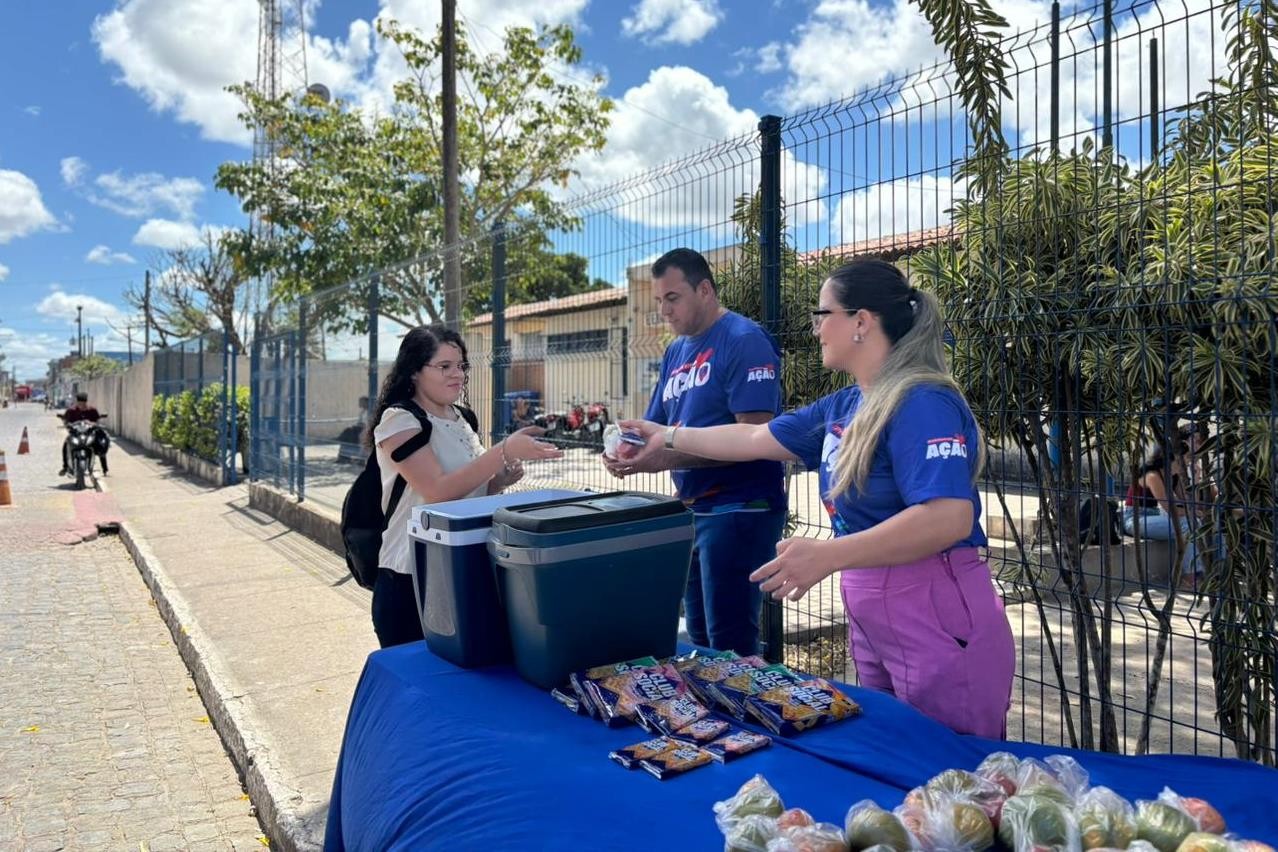 Na chegada aos locais de provas os estudantes novamente foram recepcionados com a distribuição de água, frutas e lanches, um apoio essencial para que todos pudessem ter tranquilidade durante a realização das provas.