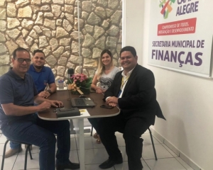 A reunião contou com a participação do coordenador de tributos Yanmerson Guedes, da Assessora Especial da Secretaria Nayane Madeiro e do consultor Sandro Ramos.