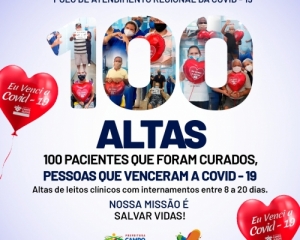 Na ultima segunda-feira 13, a direção da unidade divulgou que já atingiu a marca de 100 altas medicas de pessoas que foram curadas do Covid19 após a conclusão dos tratamentos na unidade de saúde.