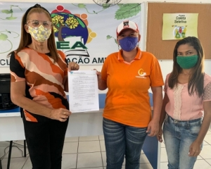 No momento da doação estiveram presentes a técnica da SEMED/Coordenação de Programas Estratégicos Educacionais – CPEEduc, Iracélia Gomes de Oliveira Guedes, responsável pelo PNLD no Município; a presidente da COOPECMARCA, Rosilene Tenório dos Santos e a Coordenadora do Núcleo de Educação Ambiental, Gilvanice da Silva.