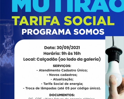 Um dos principais objetivos da ação visa ampliar o número de beneficiários das famílias de Baixa renda na Tarifa Social de Energia.