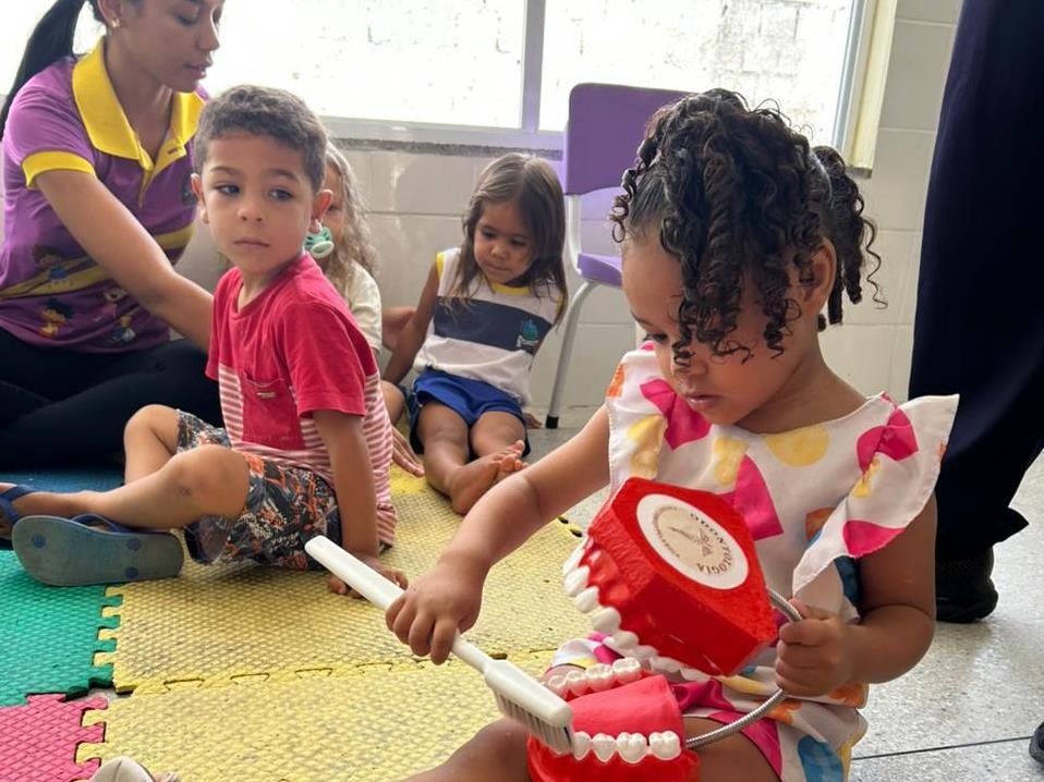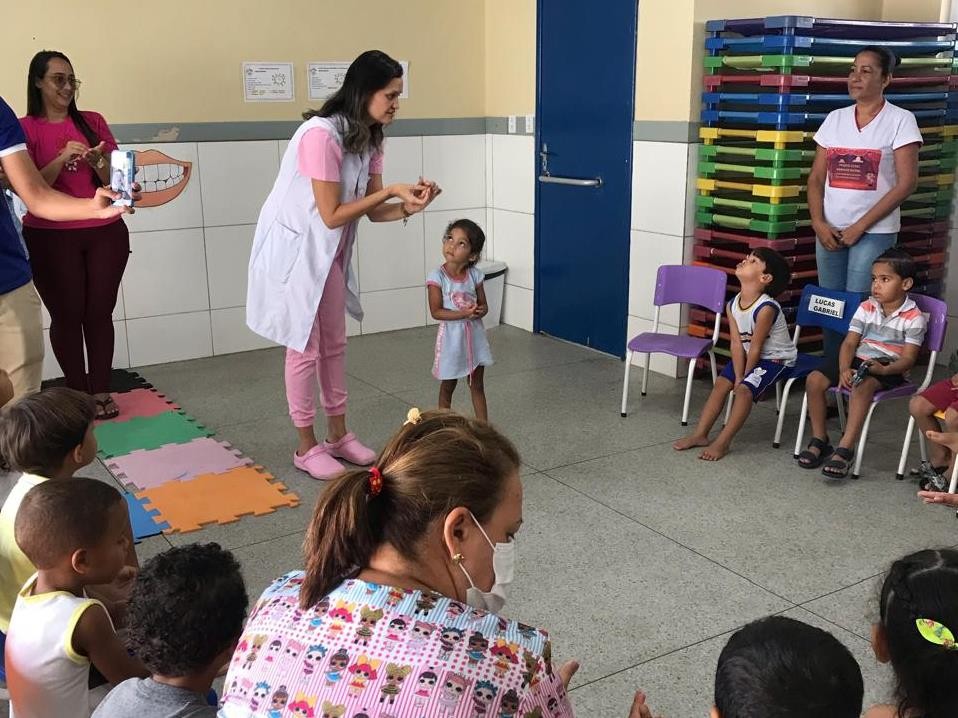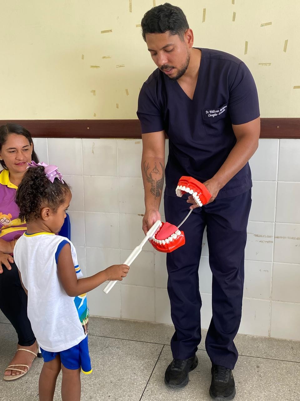 As ações em Saúde bucal, tem se destacado pela forma brilhante em que todos os odontólogos da rede, vêm atuando e desmistificando o medo de ir ao dentista para os escolares, e de como é prazeroso cuidar da saúde bucal de modo extremamente humanizado com a inserção da família e as equipes da educação e saúde ao sucesso dos resultados.