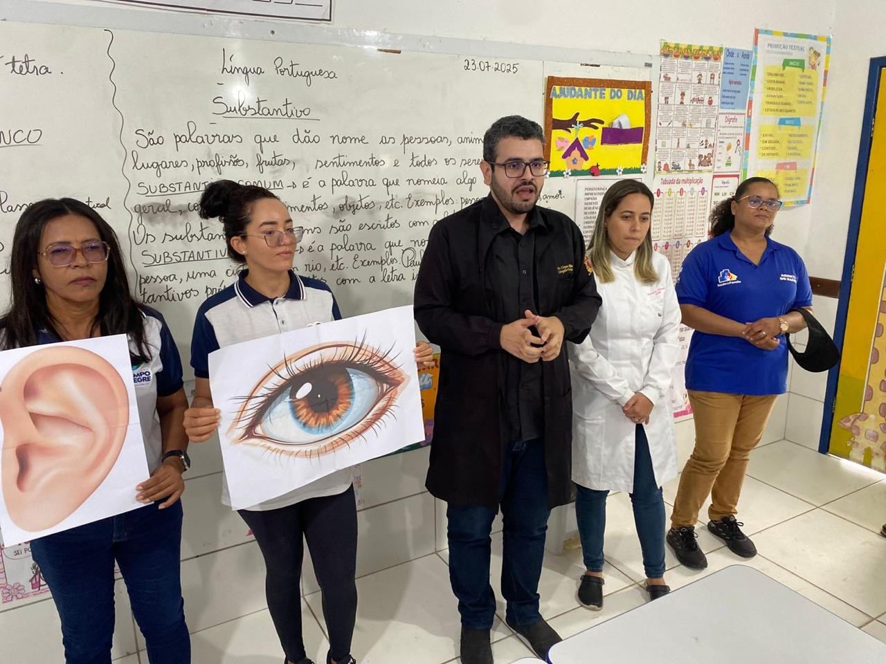 Desde o inicio do ano que a Secretaria de saúde tem intensificado as ações com acolhimento em ambiência, efetivando as ações onde o trabalho é realizado em rede usando o lúdico, visitas laborais como: laboratório de aprendizagem, com informações e orientações aos serviços ofertados para os usuários do SUS, que acontecem nas unidades educativas e de saúde, pelas equipes vinculadas da atenção básica, atenção em saúde bucal e Endemias para a promoção e prevenção das doenças evitáveis para todos os escolares da rede pública.