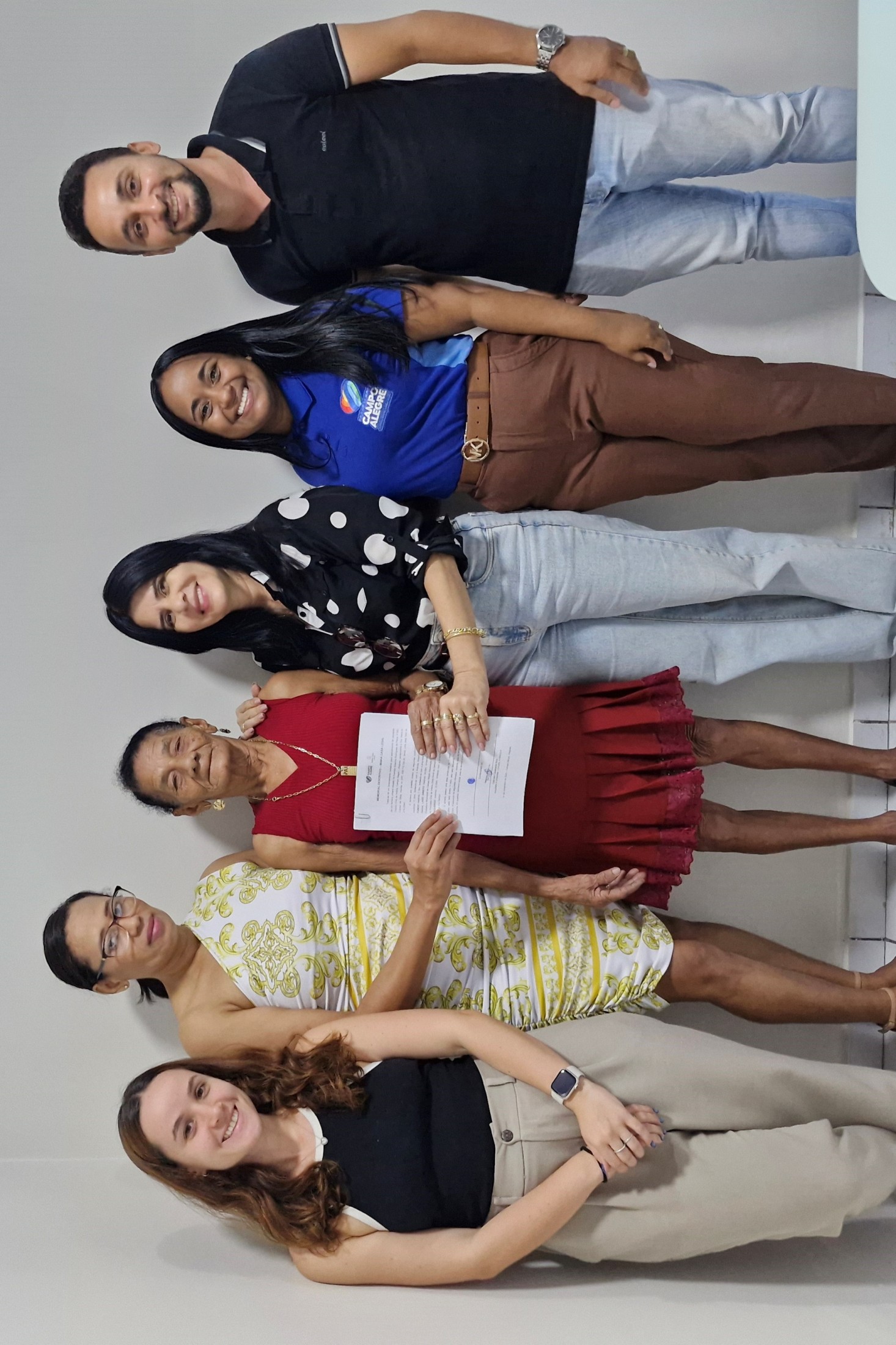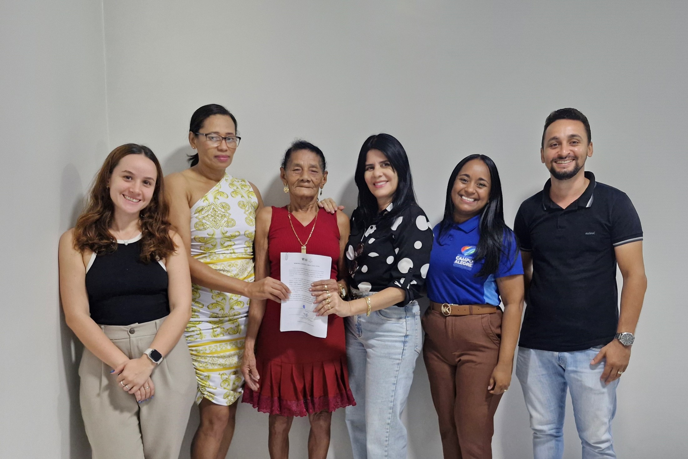 Na oportunidade estavam presentes a Secretária Municipal de Habitação Dijane Sampaio, a Gerente Municipal de Habitação Luiza Santana, o Engenheiro Civil Murilo Canário, a Arquiteta e Urbanista Gabriela Cavalcante e a contemplada Maria do Carmo da Silva, que foi encaminhada pela Defensoria Pública de Campo Alegre - AL para atendimento.