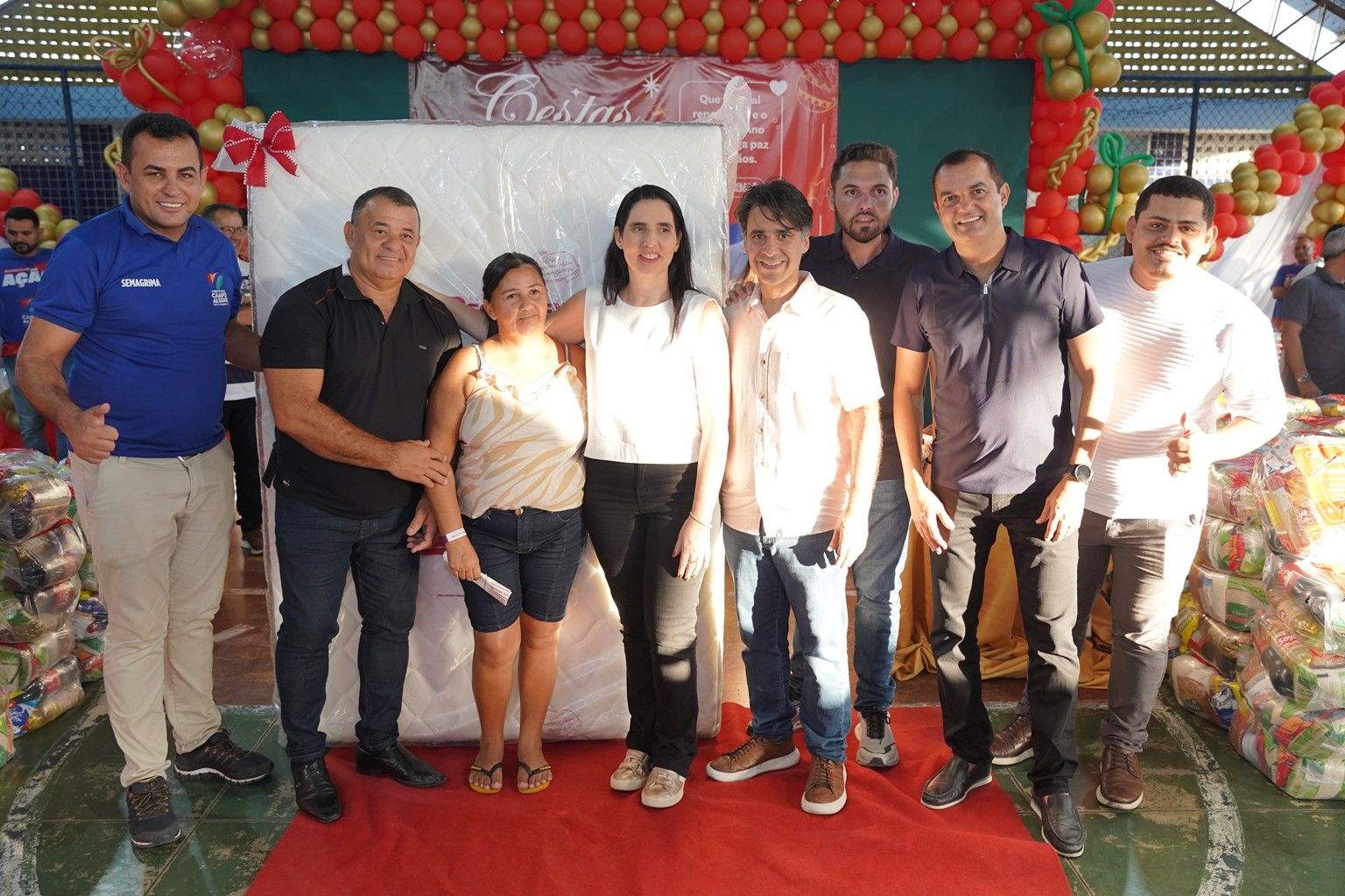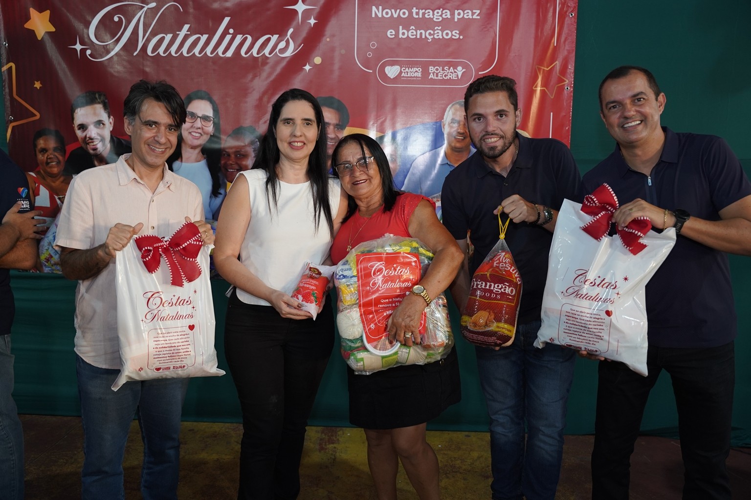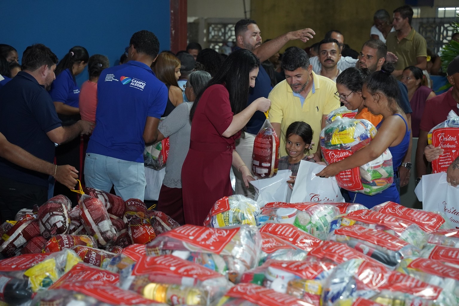 A prefeitura já realiza as entregas de 2.500 cestas básicas todos os meses, mas em dezembro foram entregues 3.500 cestas básicas que contemplaram todas as famílias que fazem parte do Programa Bolsa Alegre que já recebem as cestas mensalmente, mais as famílias beneficiárias dos complexos nutricionais (Casas da sopa), onde além das cestas todas as famílias também receberam um frango já temperado, e um litro de iogurte.