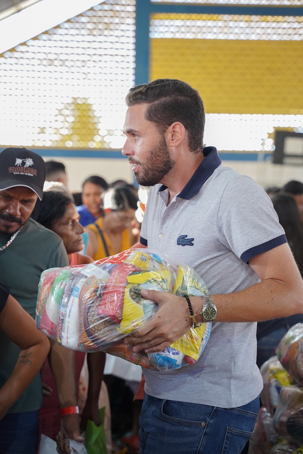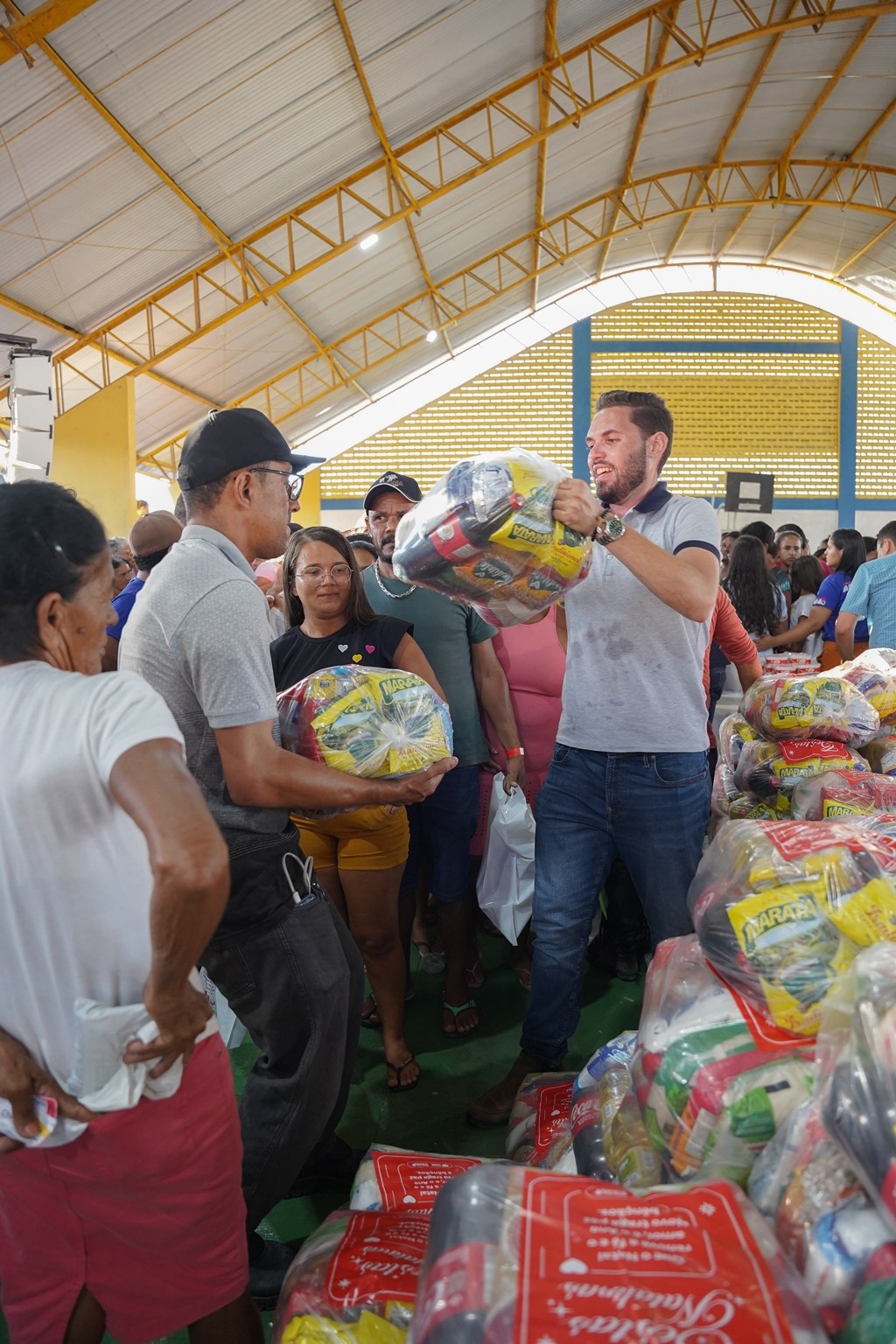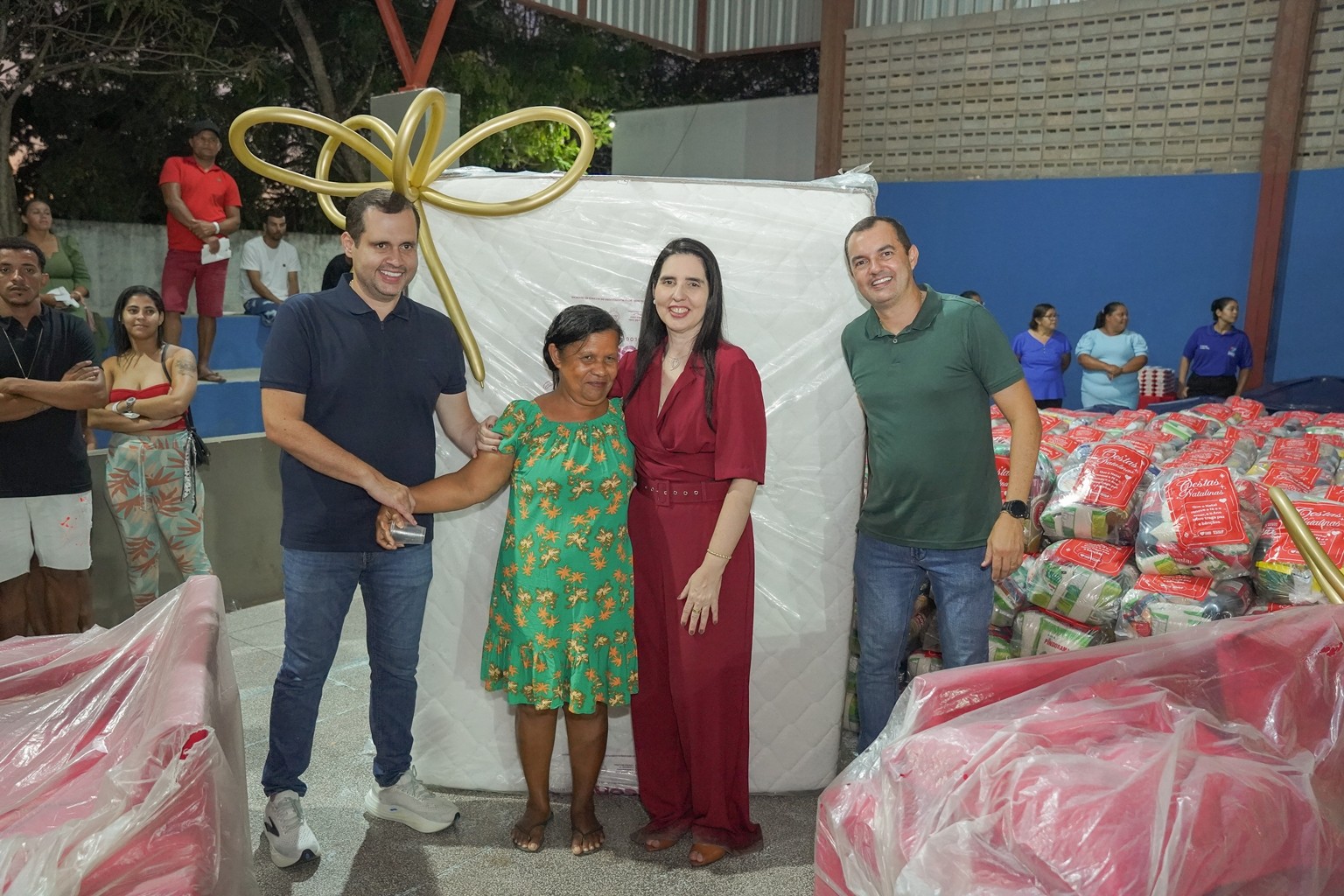 A prefeitura já realiza as entregas de 2.500 cestas básicas todos os meses, mas em dezembro foram entregues 3.500 cestas básicas que contemplaram todas as famílias que fazem parte do Programa Bolsa Alegre que já recebem as cestas mensalmente, mais as famílias beneficiárias dos complexos nutricionais (Casas da sopa), onde além das cestas todas as famílias também receberam um frango já temperado, e um litro de iogurte.