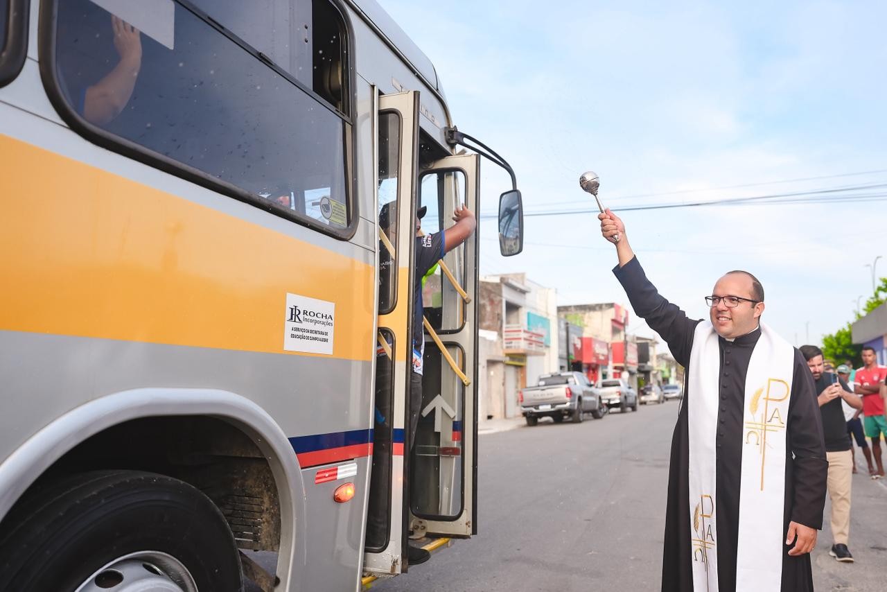 Antes de pegar a estrada os romeiros se concentraram em frente à Igreja Matriz do Senhor Bom Jesus dos Aflitos, onde o Padre Lauro Almeida realizou a celebração da bênção dos romeiros, desejando que todos tenham uma romaria em paz, e retornem a cidade de fé renovada. Foi um momento muito bonito realizado com muita devoção a Deus.
