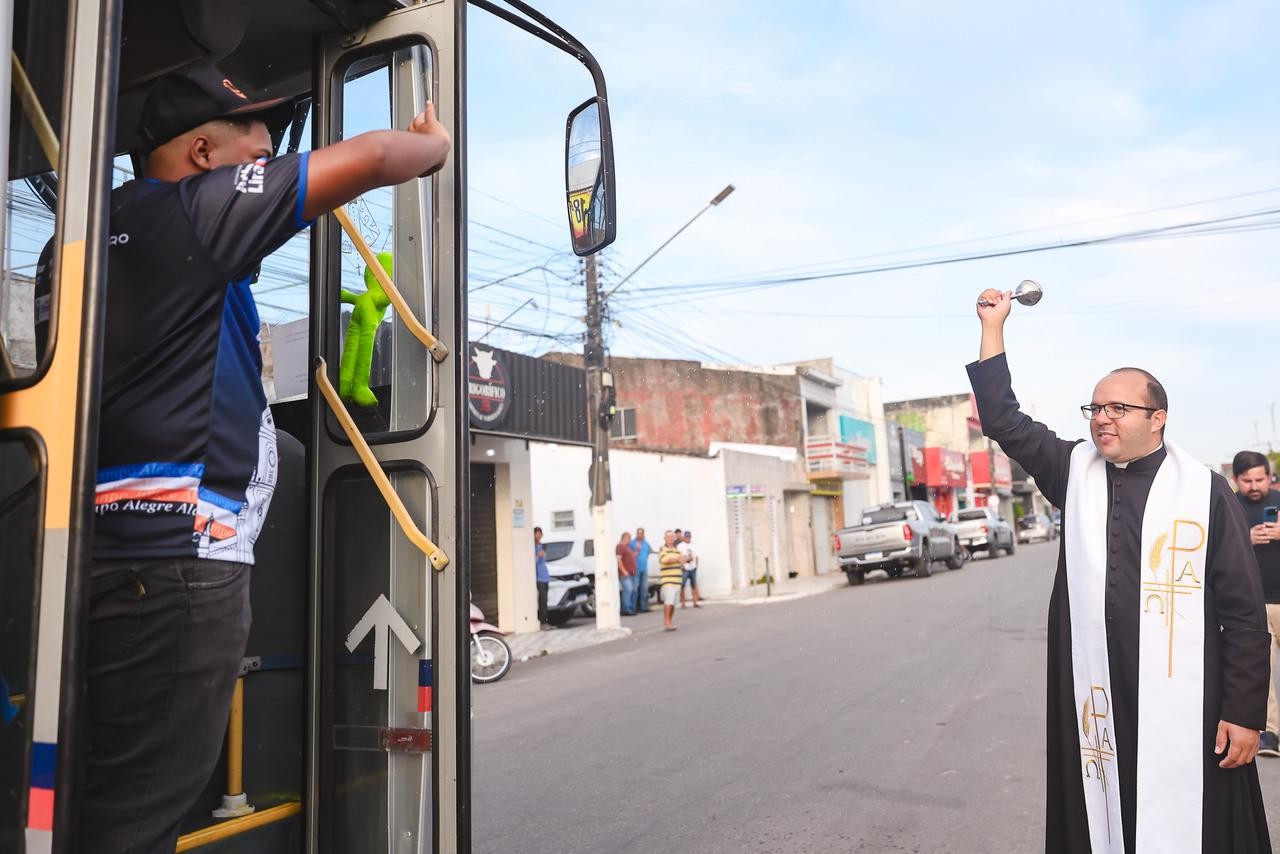 Antes de pegar a estrada os romeiros se concentraram em frente à Igreja Matriz do Senhor Bom Jesus dos Aflitos, onde o Padre Lauro Almeida realizou a celebração da bênção dos romeiros, desejando que todos tenham uma romaria em paz, e retornem a cidade de fé renovada. Foi um momento muito bonito realizado com muita devoção a Deus.