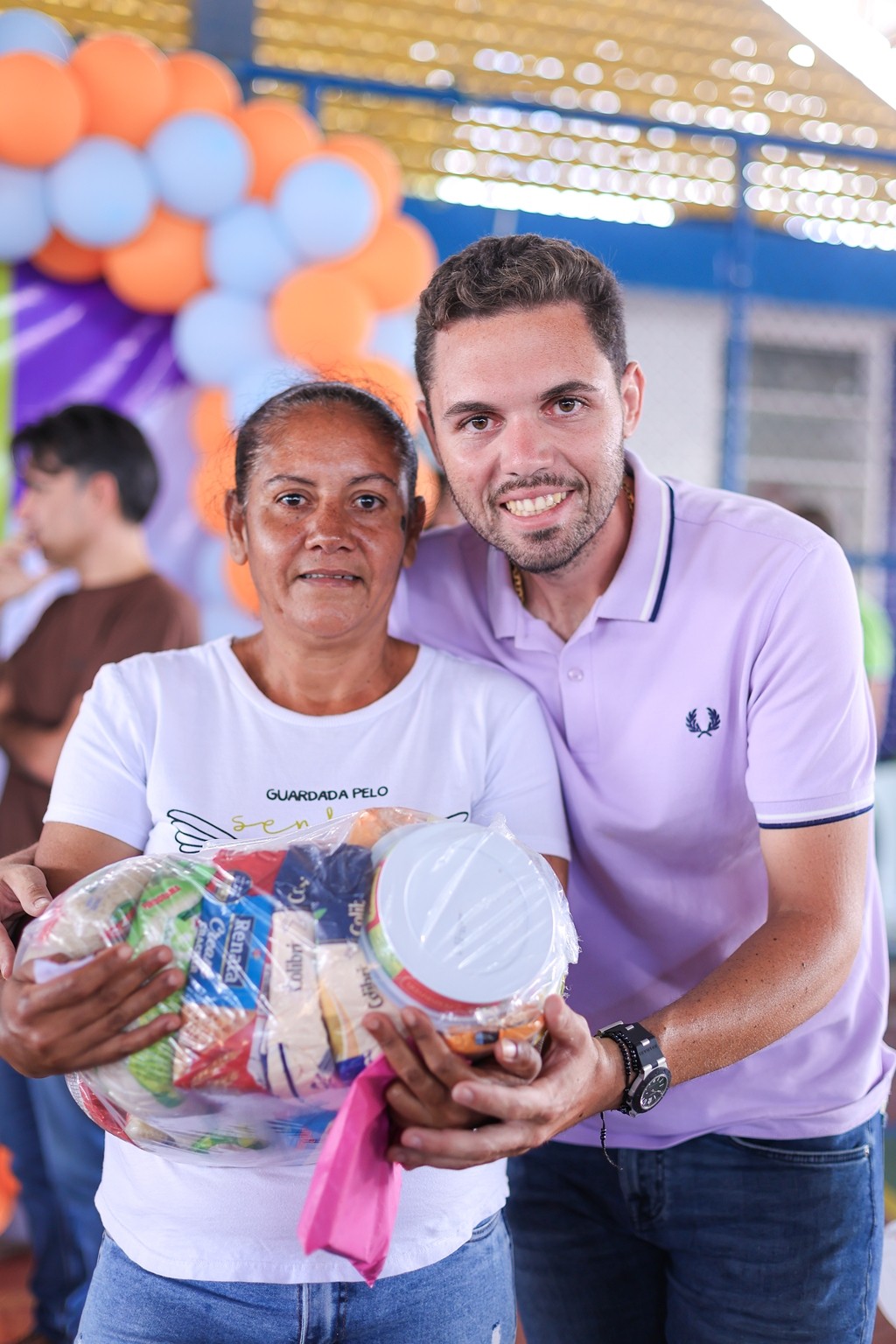O vice-prefeito Leonardo Monteiro, o gestor administrativo Nicolas Pereira, o gestor administrativo Duduzinho Pereira, vereadores e secretários municipais participaram das entregas, garantindo que as cestas chegassem a todas as famílias que mensalmente são beneficiarias.