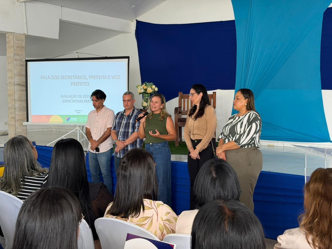 O momento também contou com a participação da prefeita Pauline Pereira, que enfatizou a importância do comprometimento e da atenção para com os alunos da rede municipal, bem como anunciou a realização de mais uma Jornada Pedagógica, prevista para ser realizada em março do corrente ano.