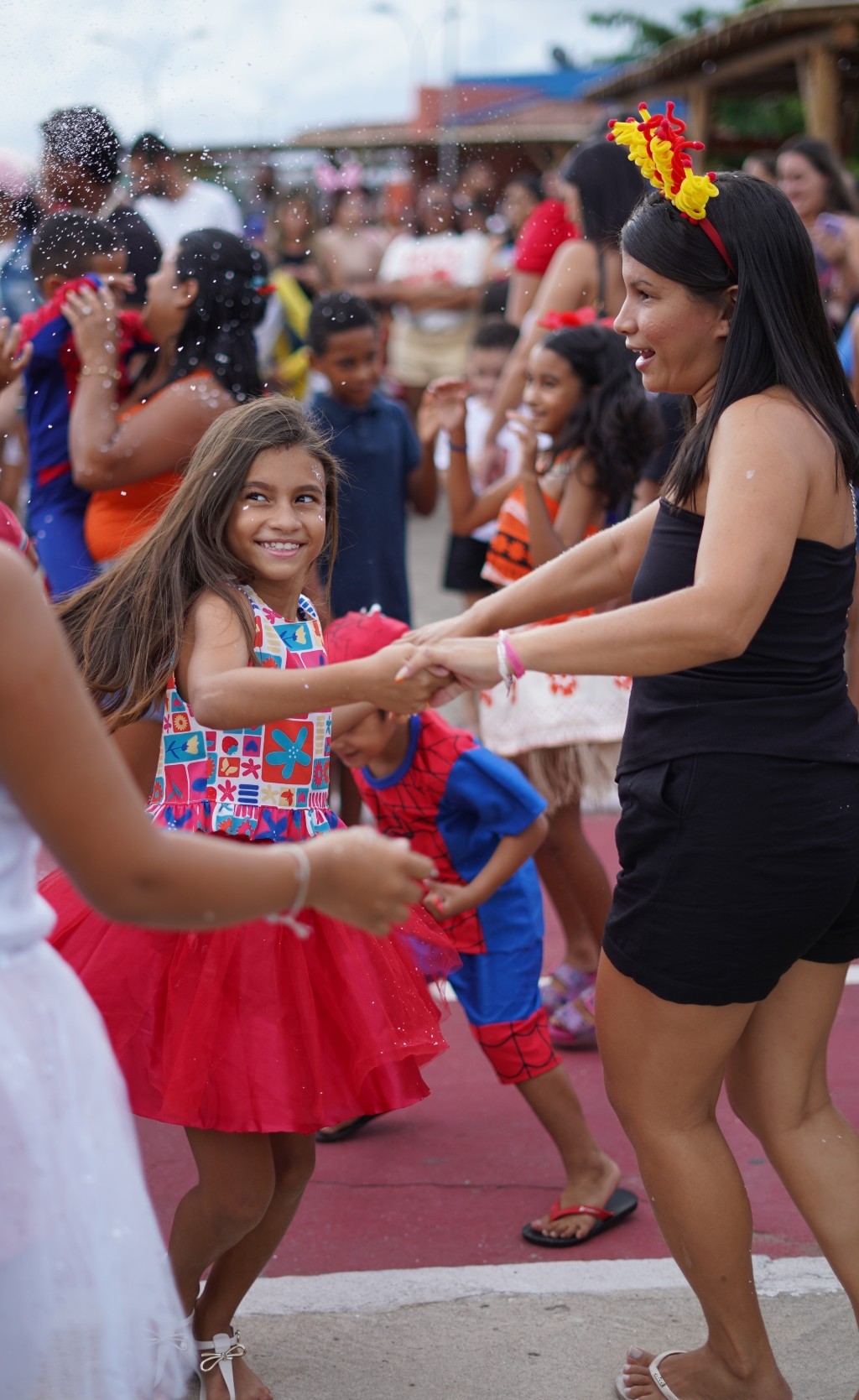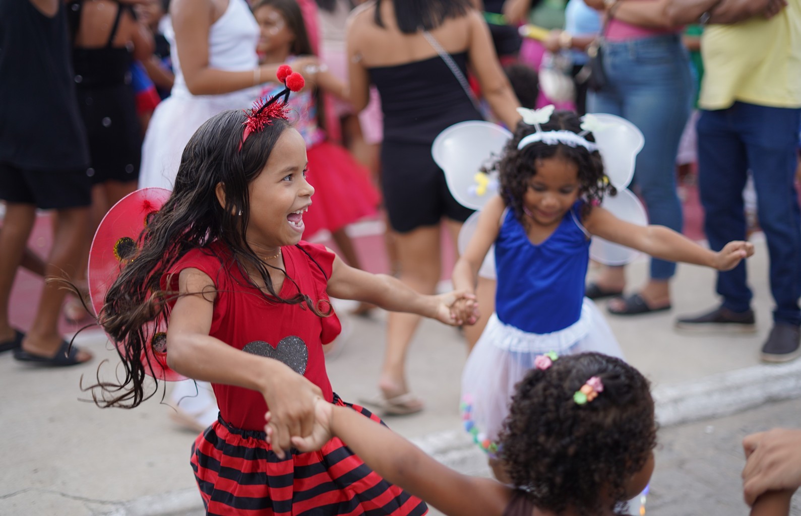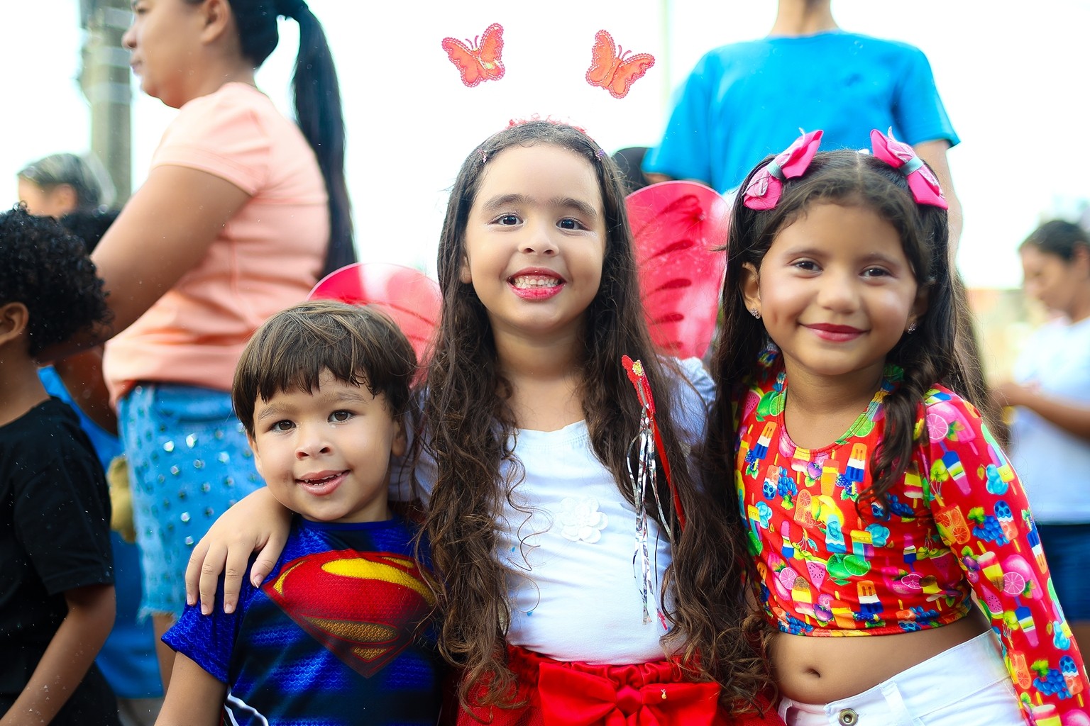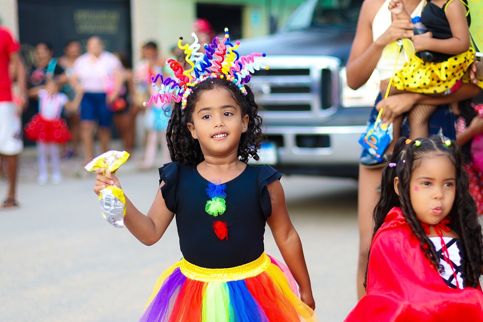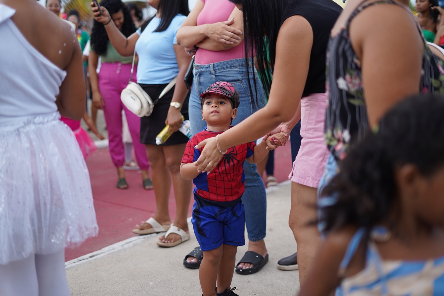Centenas de crianças, papais, mamães e parentes cheios de alegria e entusiasmo foram às ruas do distrito prestigiar o primeiro dia de festa do Carnaval 2026 e nada mais justo do que começar pela criançada.