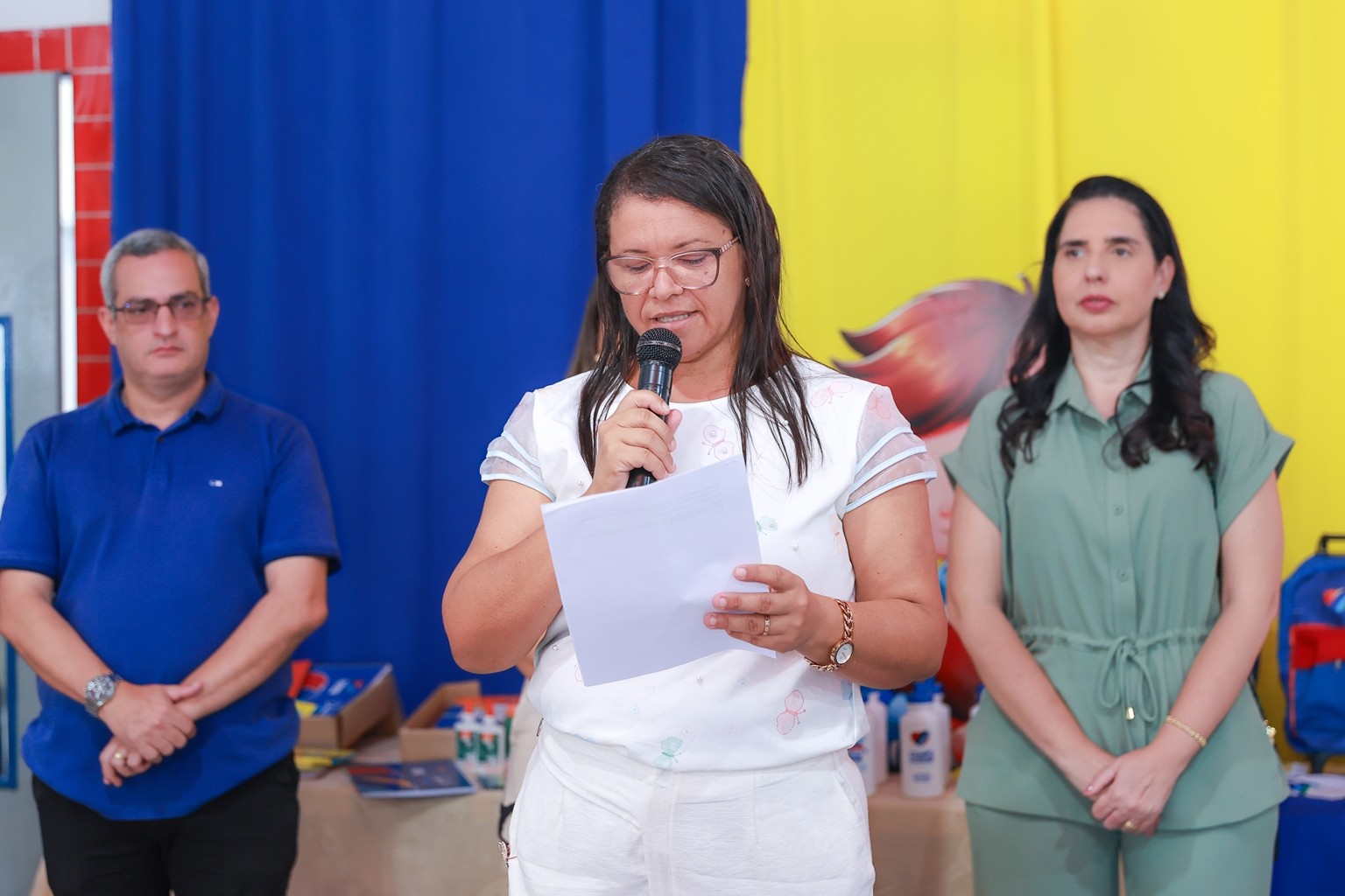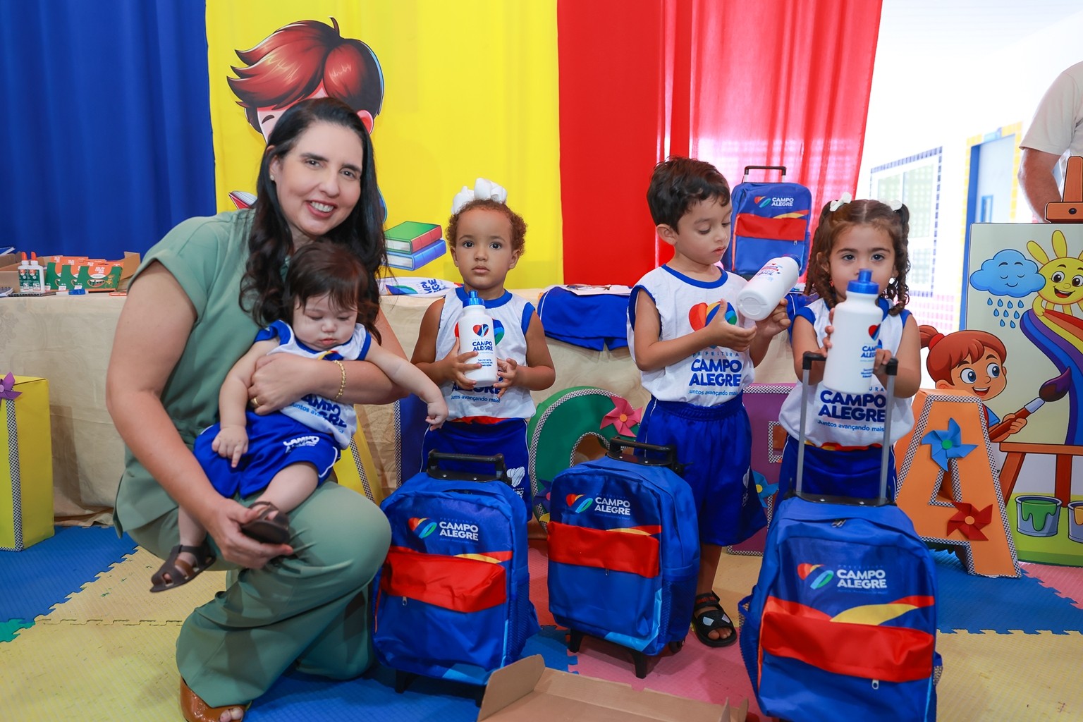 Ainda na ocasião a prefeita realizou as entregas de fardamentos, garrafinhas squeezeres e mochilas para os alunos da creche. E nos próximos dias todos os alunos receberão os kits escolares com todo material para utilização nas atividades do ano letivo.