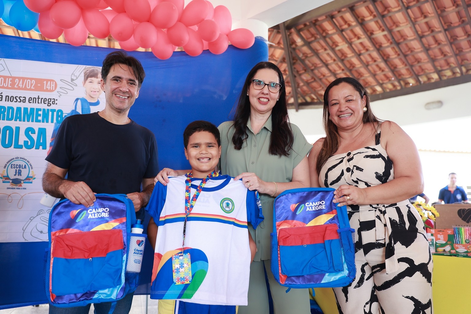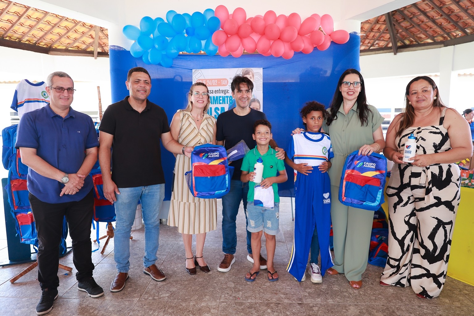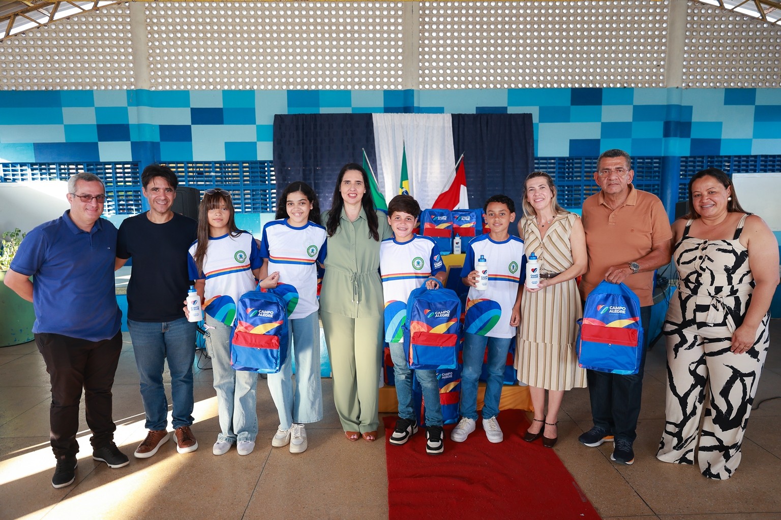 Além dos uniformes os alunos receberam mochilas e garrafinhas squeezeres e receberão nos próximos dias os kits escolares completos.