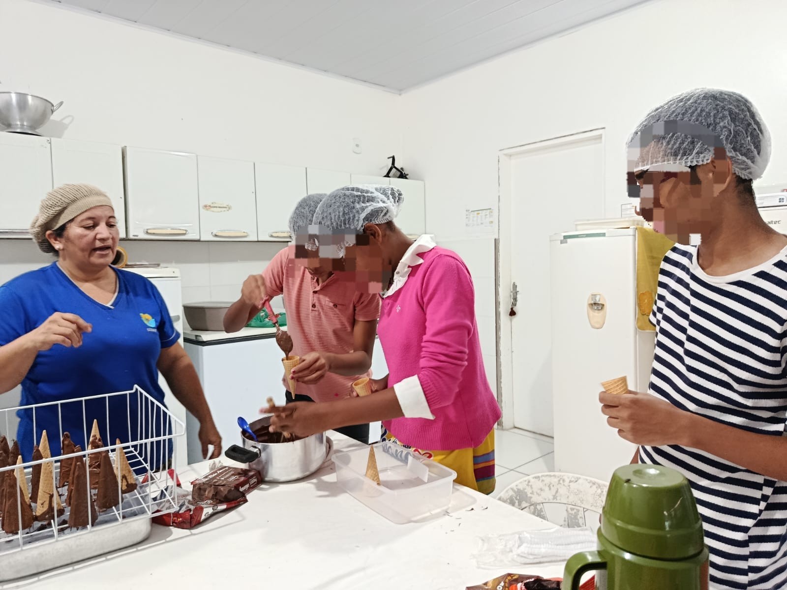 O Abrigo Regional Hélio Vieira Gama, situado no distrito de Luziápolis, realizou durante o período da Páscoa, uma Oficina de Cones Recheados. A atividade foi conduzida pela colaboradora Patrícia, que auxiliou os acolhidos em todas as etapas do processo, incluindo o derretimento do chocolate, o revestimento dos cones, o preparo dos recheios e a decoração, com a embalagem adequada.