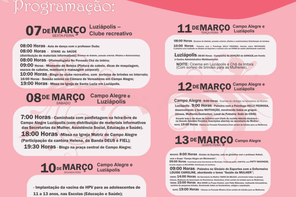 Programação da Semana da Mulher em Campo Alegre