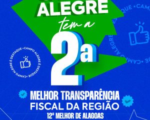 O município de Campo Alegre mais uma vez se destaca entre os 102 municípios alagoanos. Campo Alegre aparece como o 12° município mais bem colocado em qualidade dos dados contábeis e transparência fiscal.