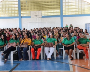 A palestra contou com a participação de 300 profissionais, entre Professores, Auxiliares da Educação Infantil, equipe SEMED e a Coordenadora do SEBRAE Aline Cabral.