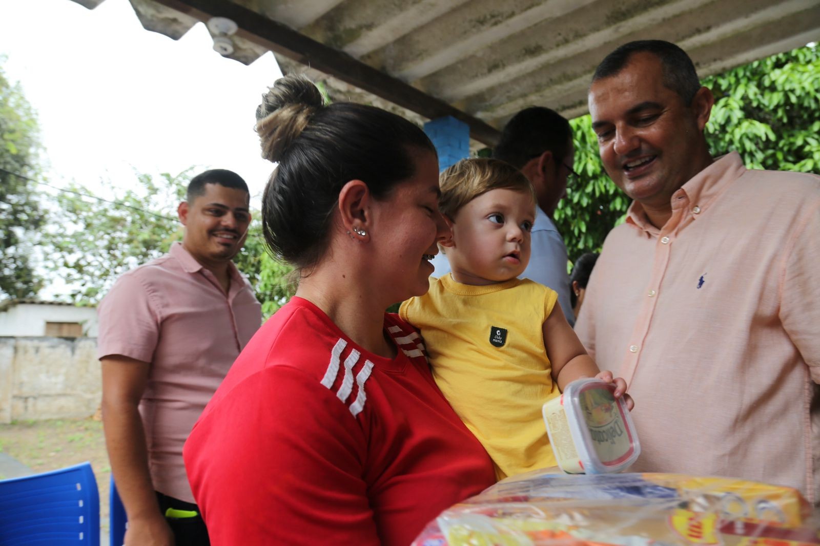 A entrega das cestas contou com a participação do prefeito Nicolas Pereira, do vice-prefeito Leonardo Monteiro, vereadores e secretários municipais.