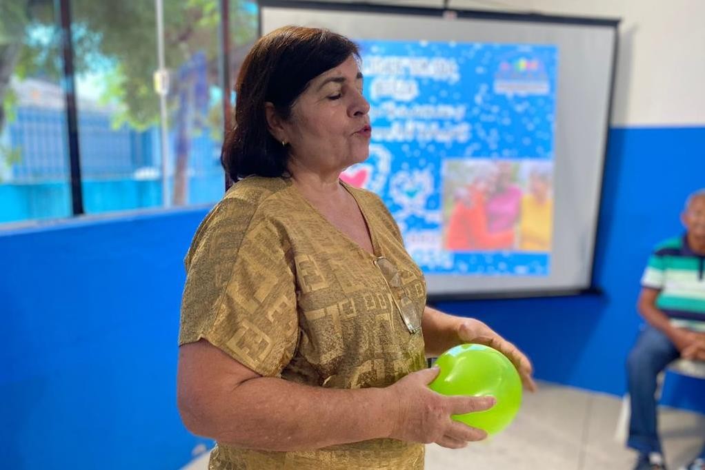 Dando continuidade ao mês, as quartas-feiras foram realizadas oficinas temáticas com profissionais da saúde que enfatizaram os cuidados pertinentes a melhor idade, o profissional de Educação Física, Fernando Moura, mostrou como simples movimentos podem aumentar a qualidade de vida do grupo, a nutricionista Grasiele, explicando os benefícios de uma boa alimentação, seguindo pela Enfermeira Daniele, dando dicas de autocuidado.