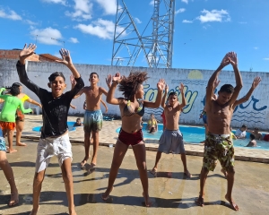 O momento festivo aconteceu na piscina Family lazer, e proporcionou muita diversão e alegria aos adolescentes, uma festa com cores vibrantes, flores e frutas em clima de verão.