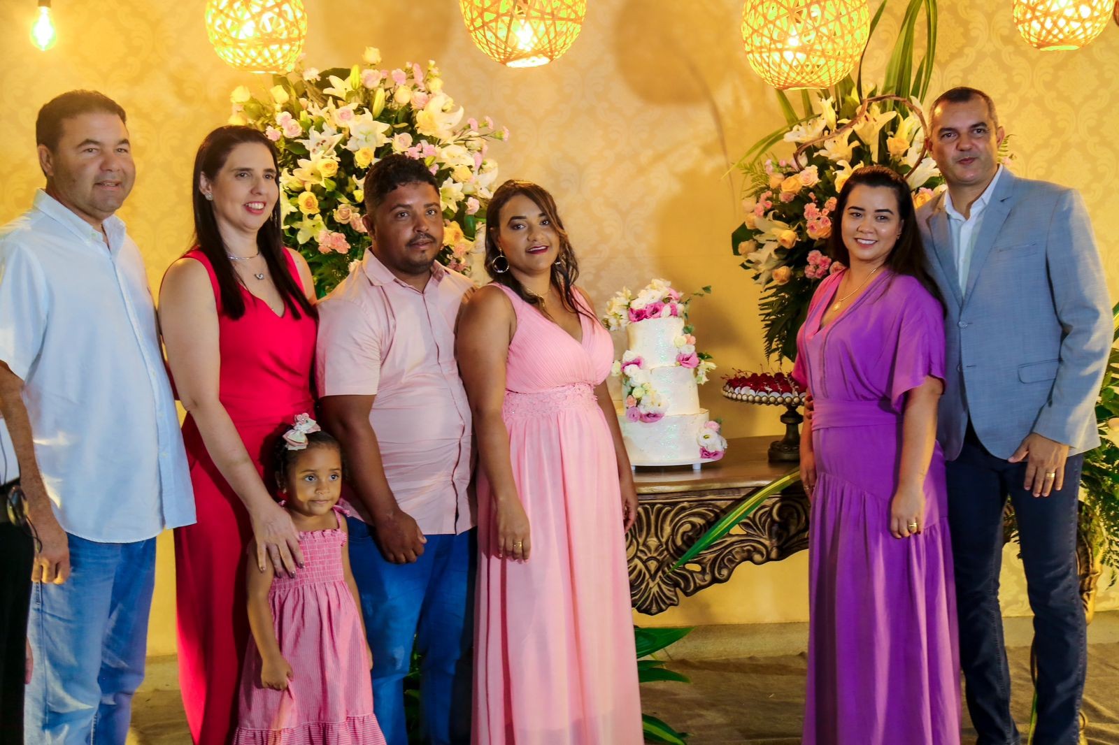 A festa foi preparada com muito carinho e cuidado, com direito a tapete, bolo de casamento, música ao vivo, sorteio de brindes, buffer e a presença de amigos e familiares.